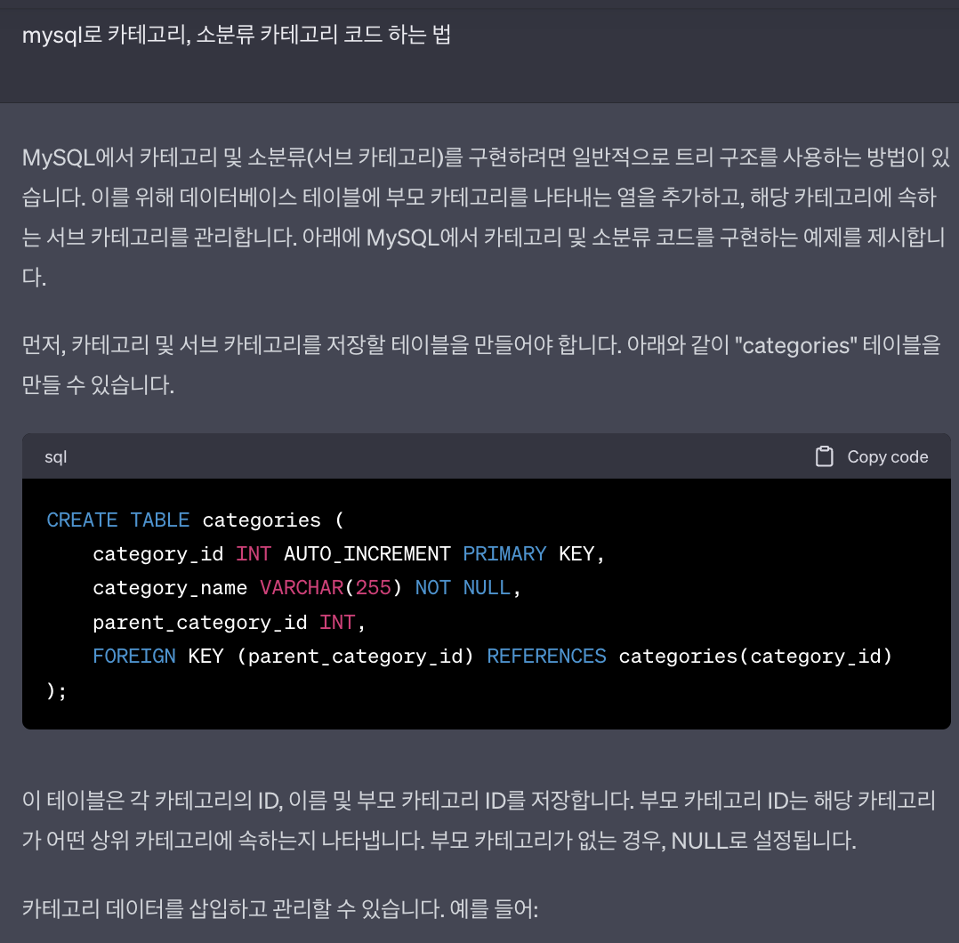 INSERT INTO categories (category_name, parent_category_id) VALUES ('스마트폰', 1);