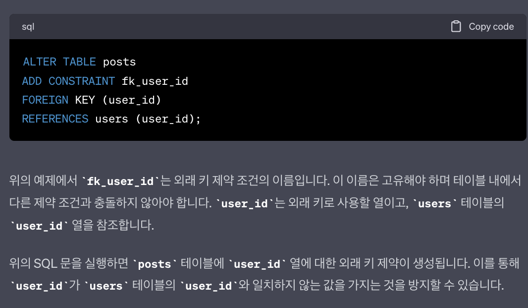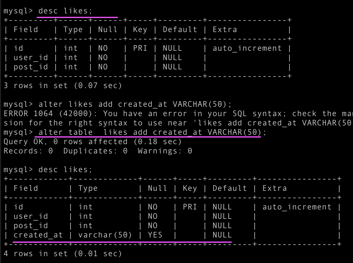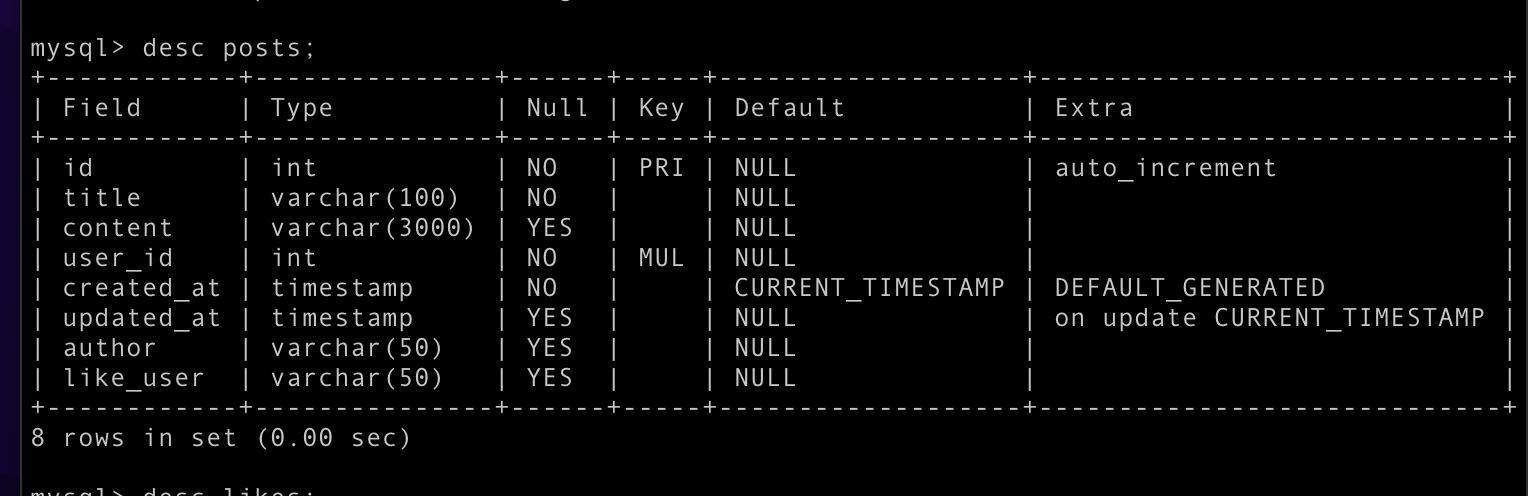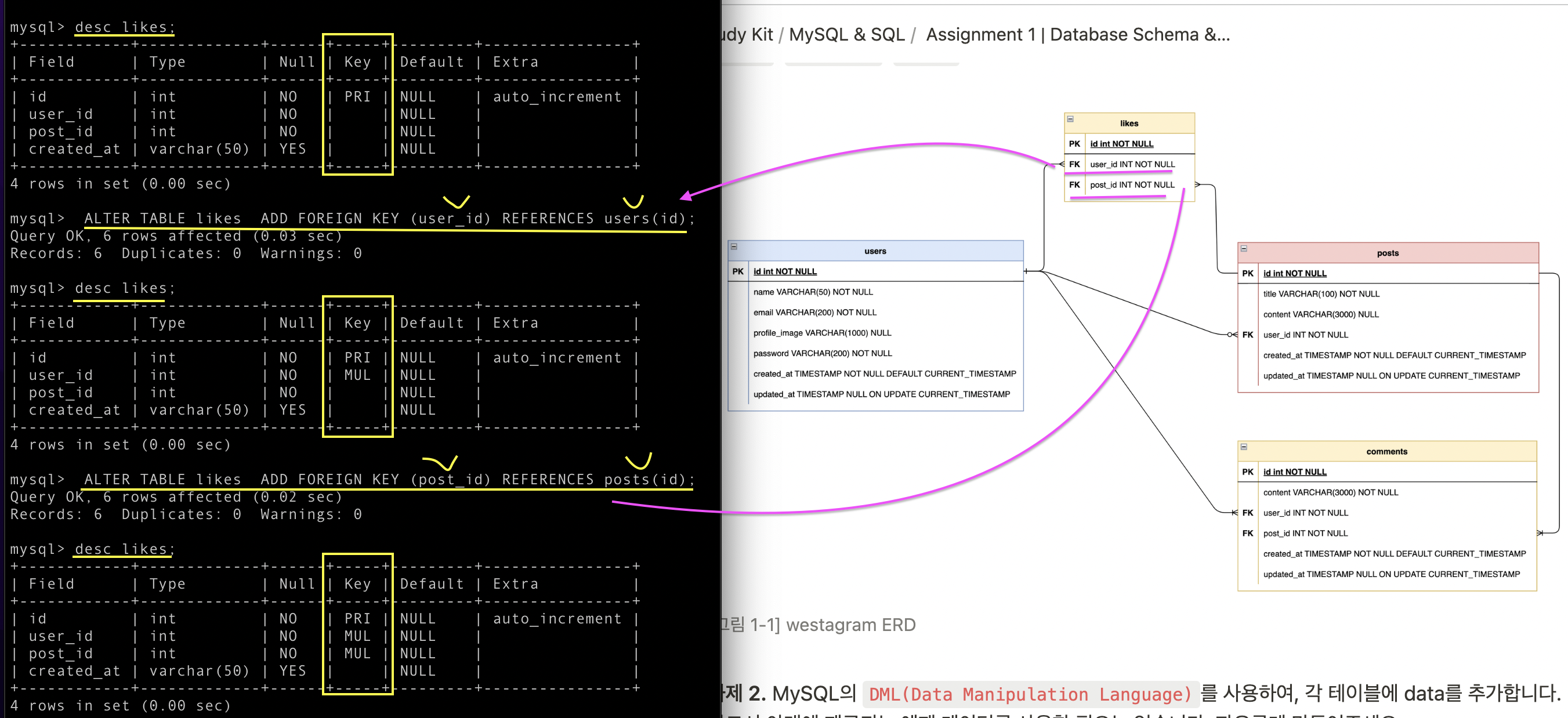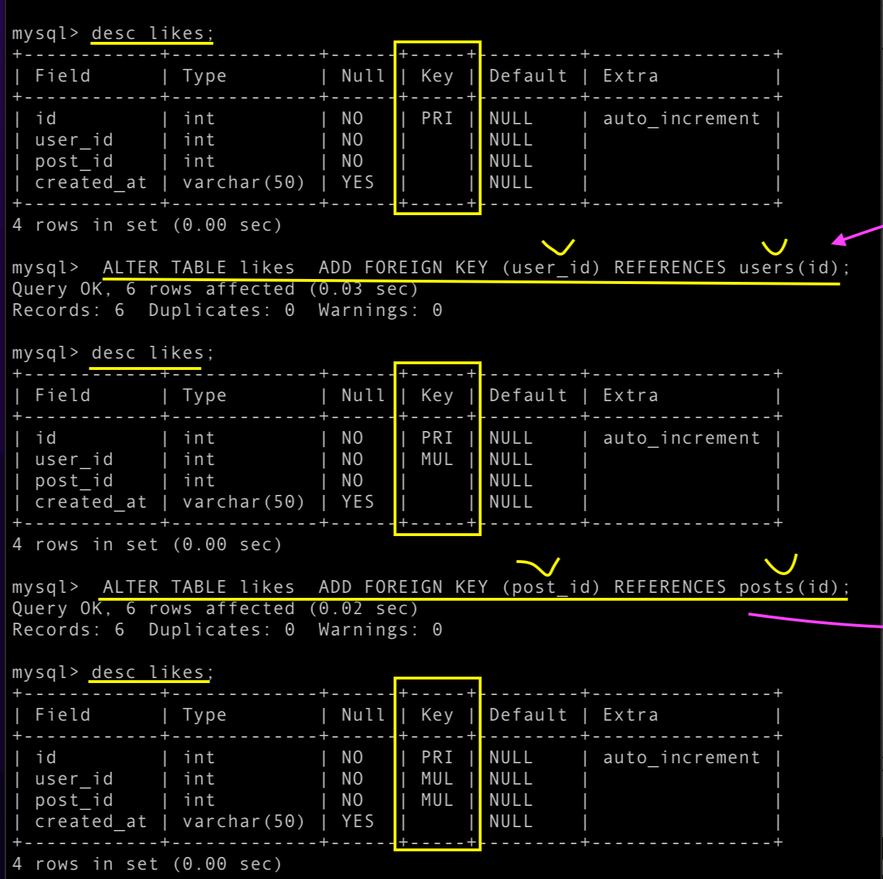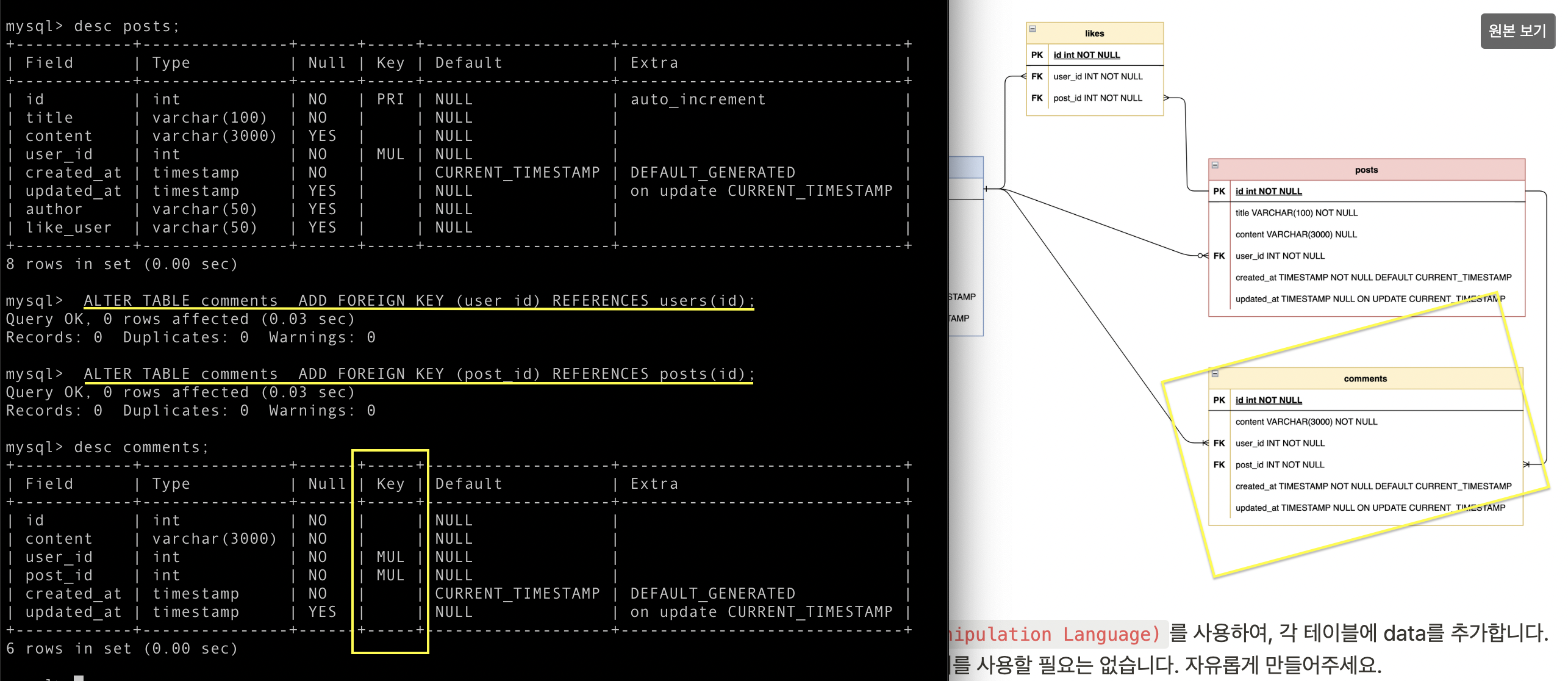 desc posts 해보니, 1번에서 fk 연결이 안 돼서 해야 함