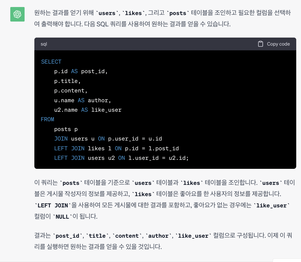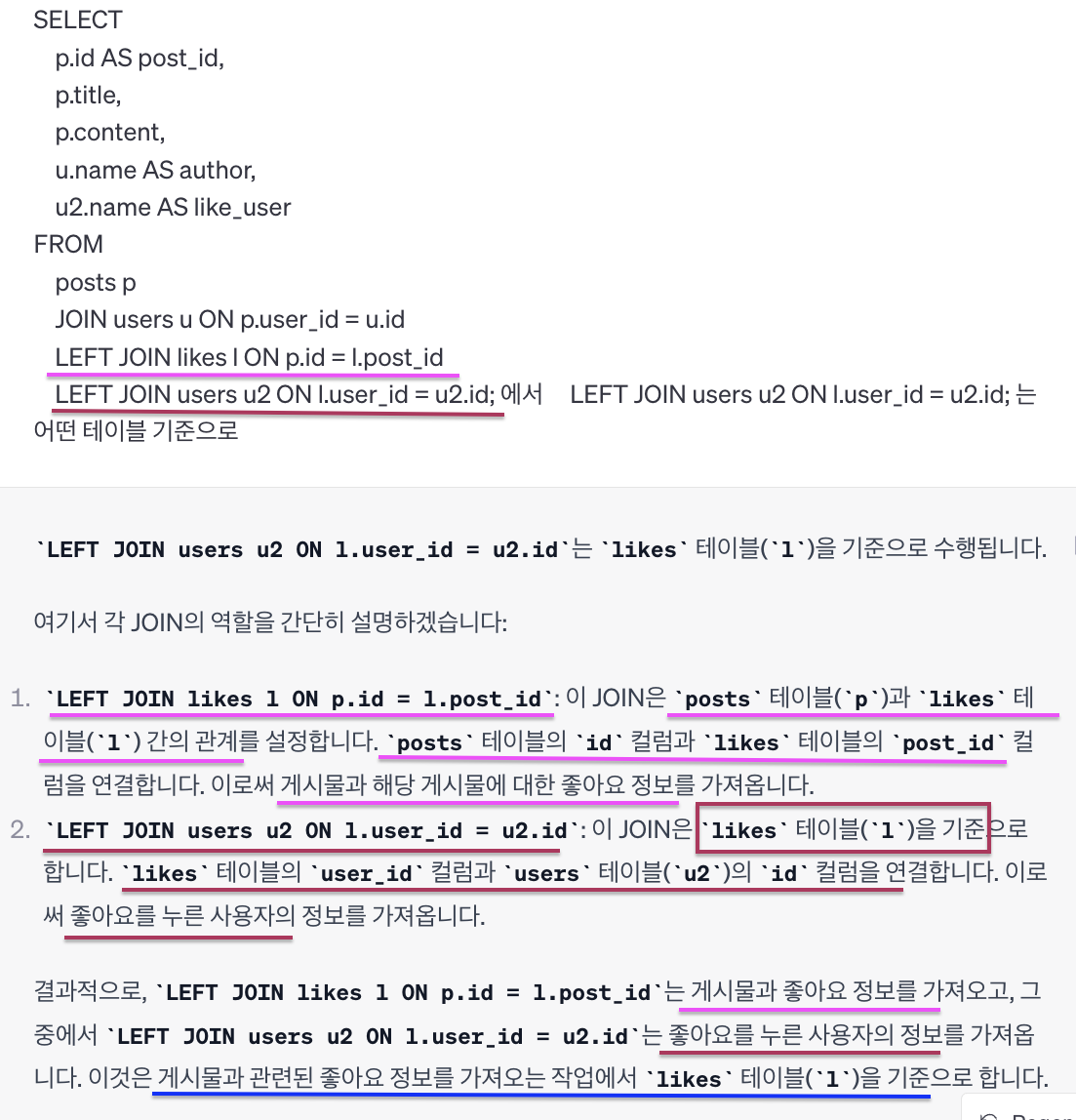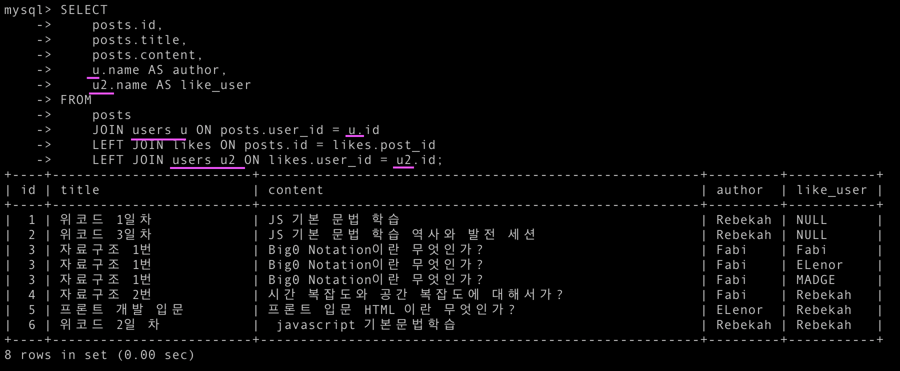 likes의 user_id를 기준으로 join 했는데, 그거를 like_user 칼럼으로 표시해서,