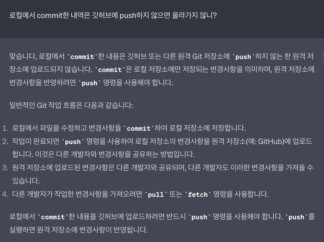로컬에서 commit 후 새로고침 해도 remote에는 commit 숫자가 안 올라간다
