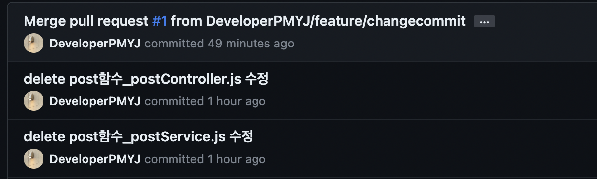 commit 내역 내용 중에 postServices.js 였던 게 postController.js로 바뀌었다.