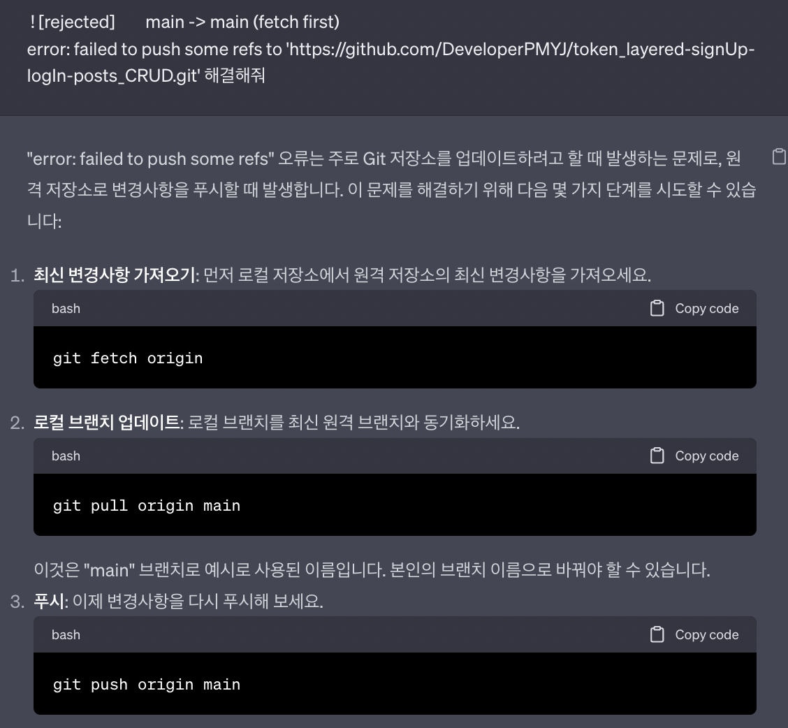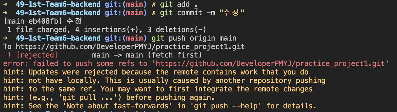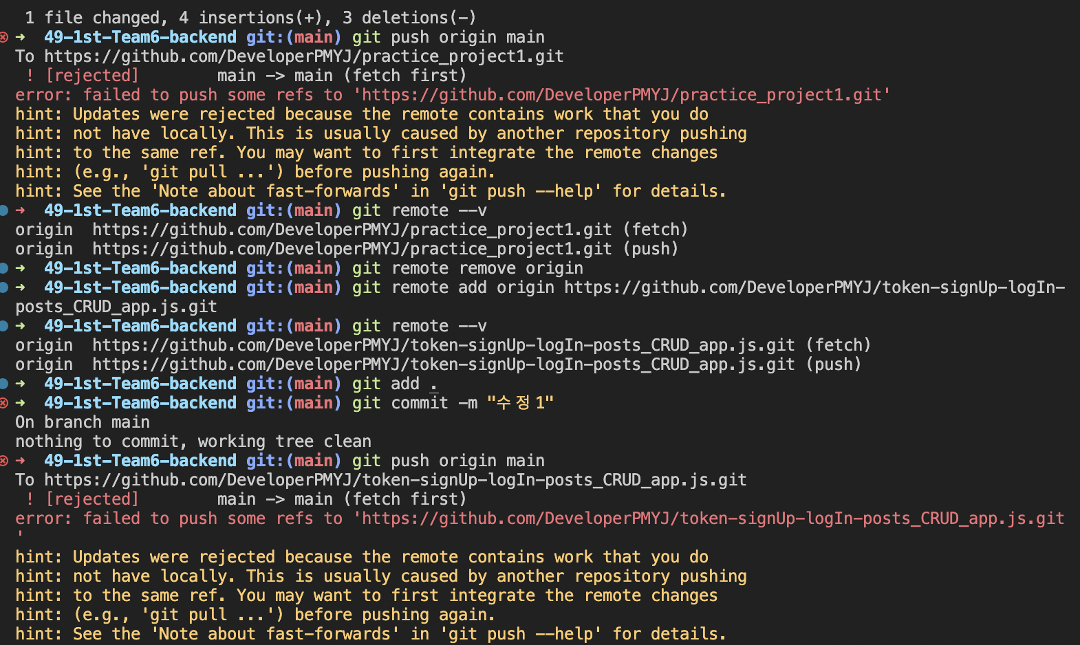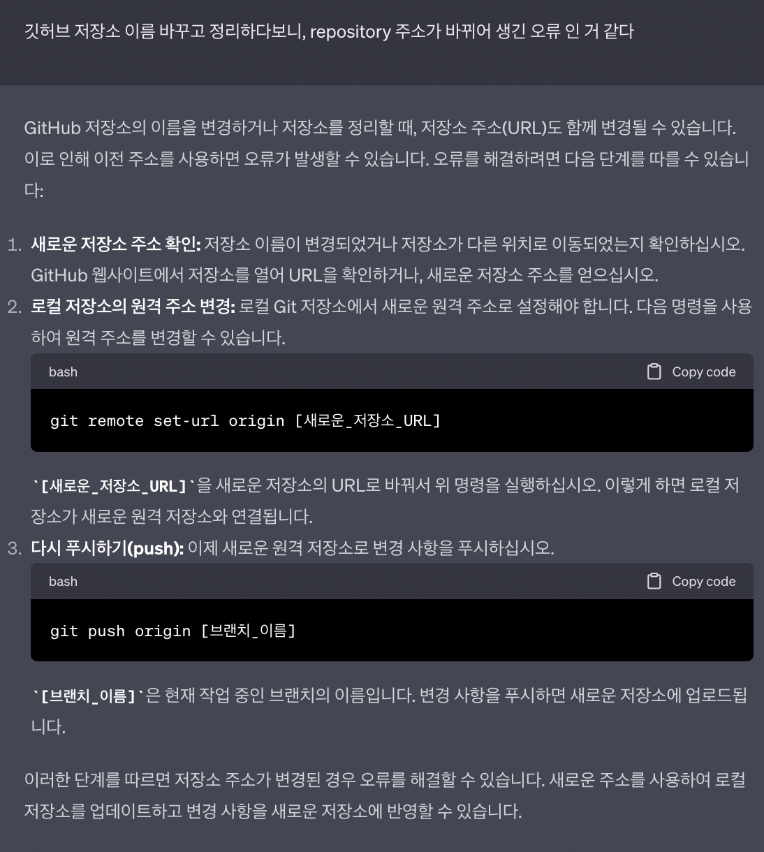 저장소 주소도 함께 변경 되어 오류 가 나니,