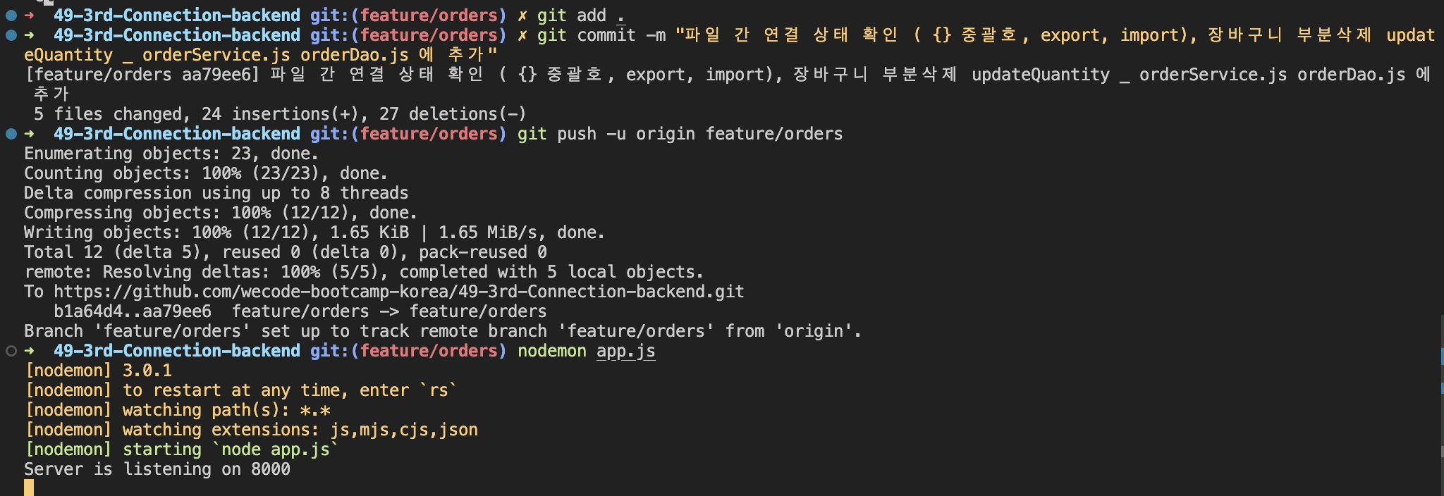 [수정 후, 장바구니 선택삭제 후, 다시 서버 연결 성공]