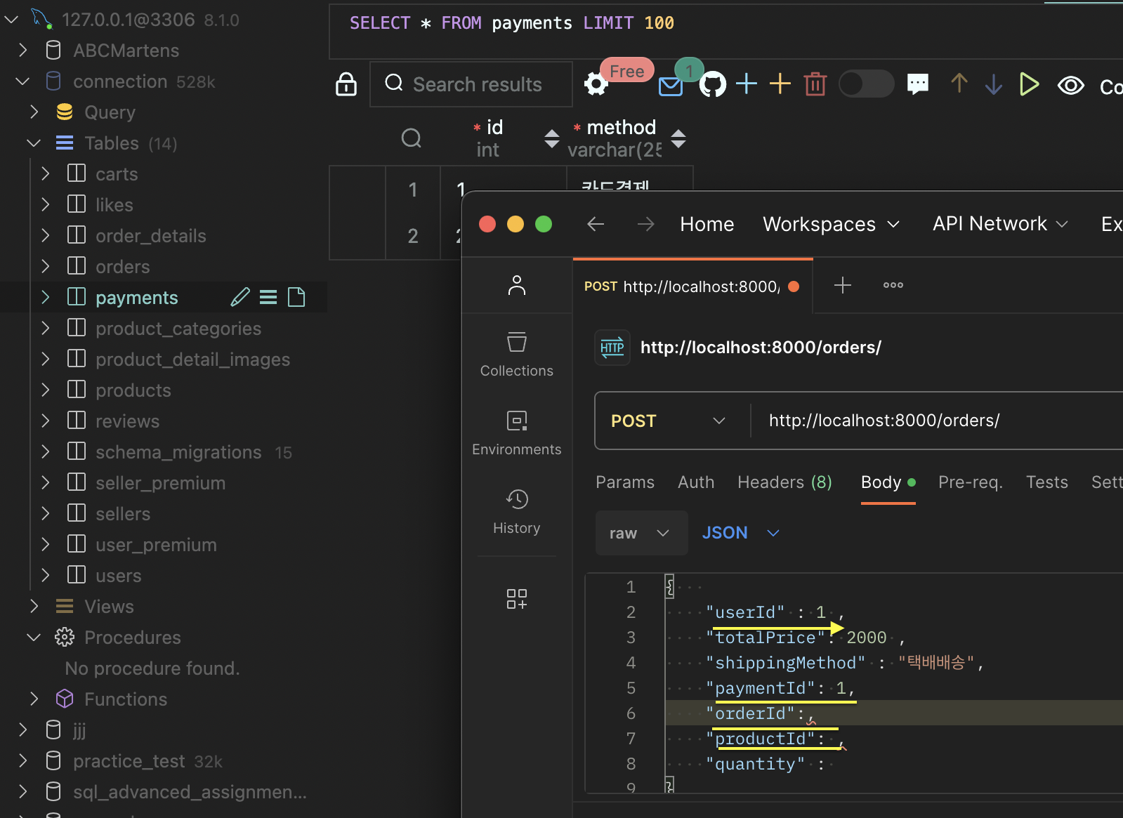 데이터베이스 값을 넣으면서 postman 은 주소가 하나인데 그럼 나는 뭘 확인해야 하는가?