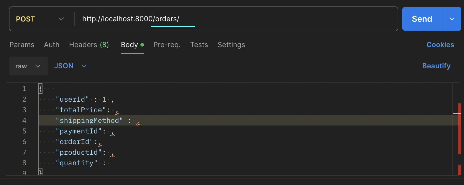 key 에 해당되는 것은 카멜로 할지 스네이크로 할지 정하면 됨 . value 값은 id에 해당될 때는 " " 없이 숫자만. 문자열일 땐, " " 으로 string으로. Project 3 - 프론트에 보내줄 api 기능 문서 1. order 테이블