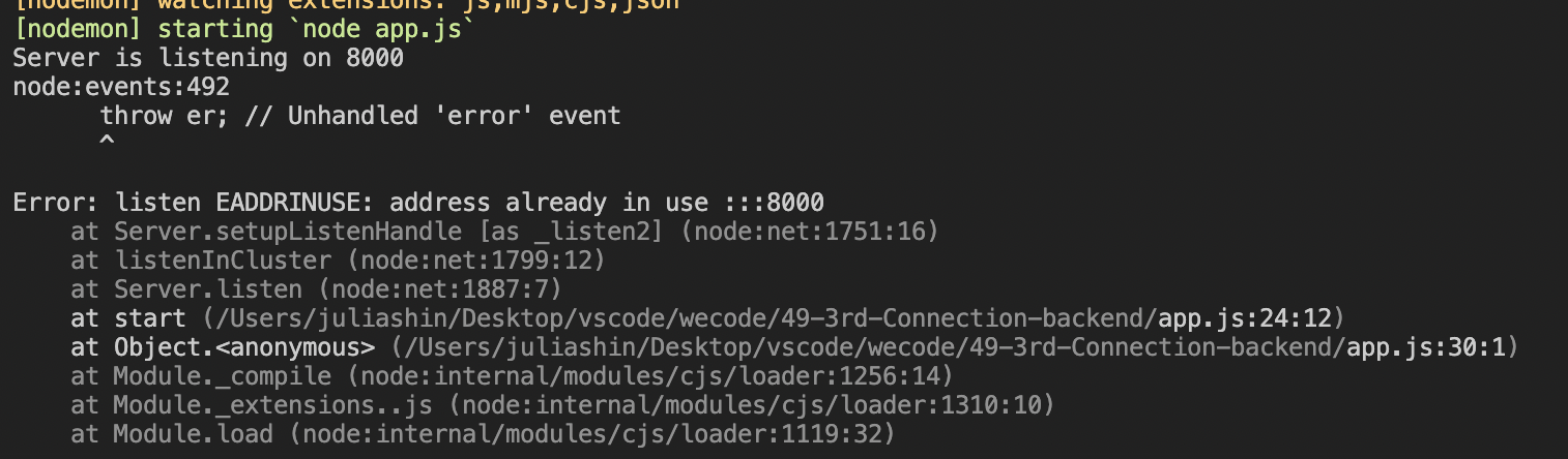 vscode를 여러 개 켜서 서버를 돌리고 있을 땐, 창을 꺼주거나,