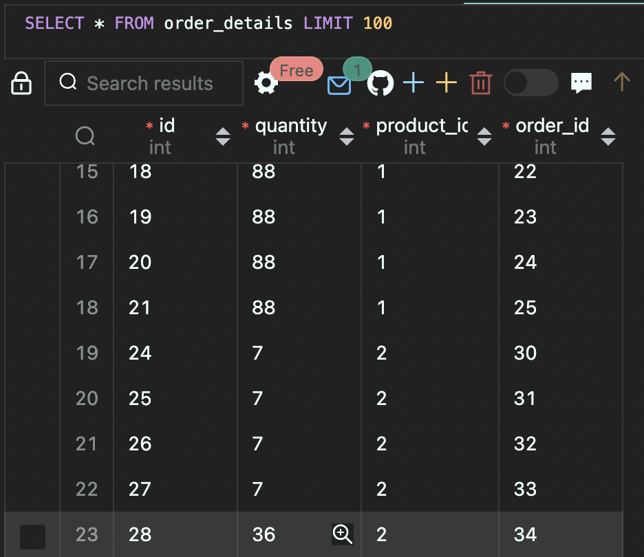 order id도 잘 찍히고틈새 order id = 33 확인하기