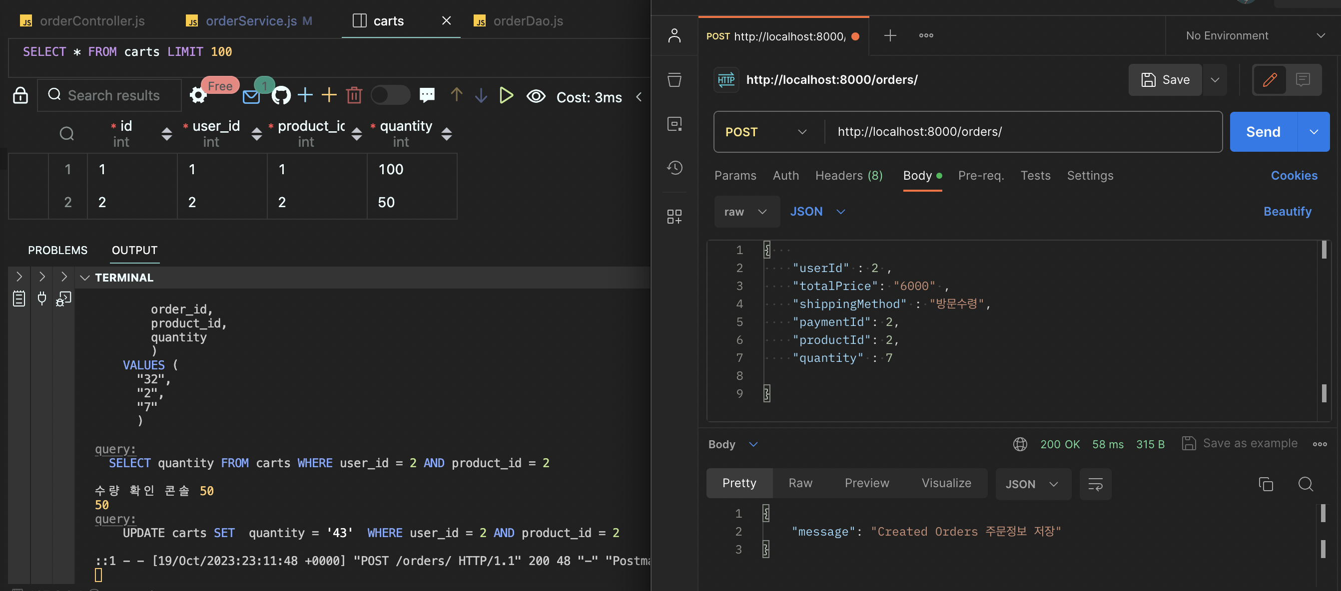 Project 3- 주문 api : postman 통신 성공 (if 에러 핸들링 x, transactionx) (0) | 2023.10.20 |