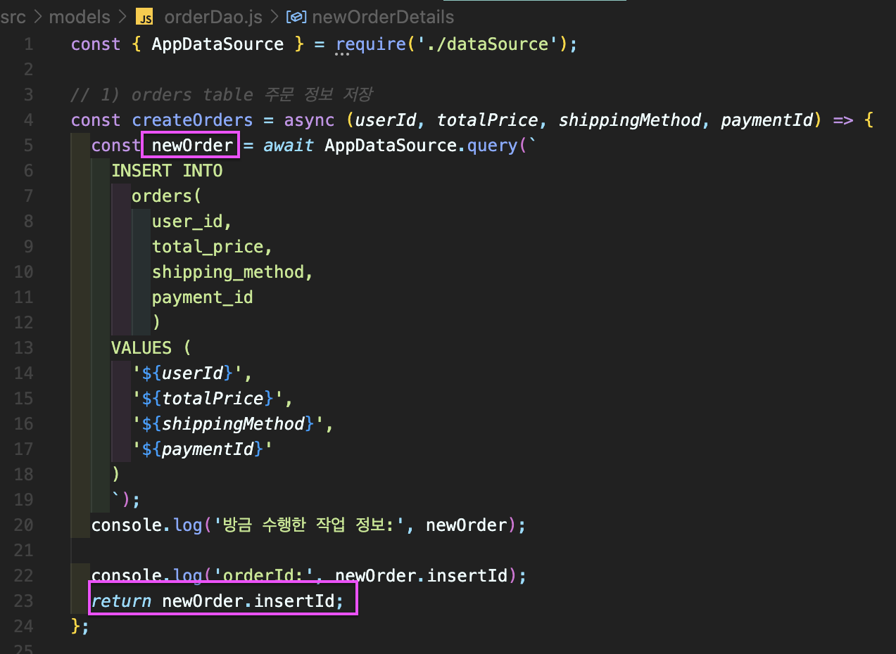 3. neworder.insert id 연결 안됐고 (return)