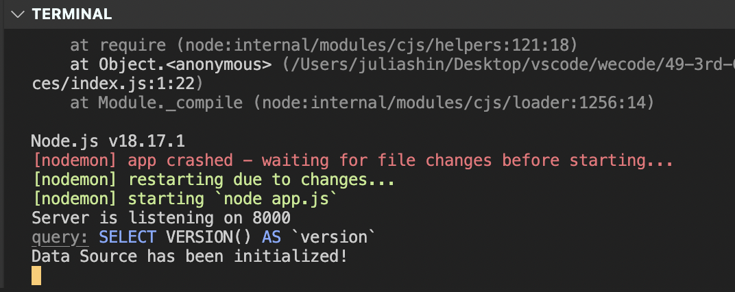 postman 통신할 때 나오는 terminal 창