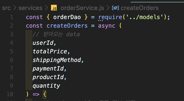 orderService.js 에서 _ create order 함수에서 에러 핸들링