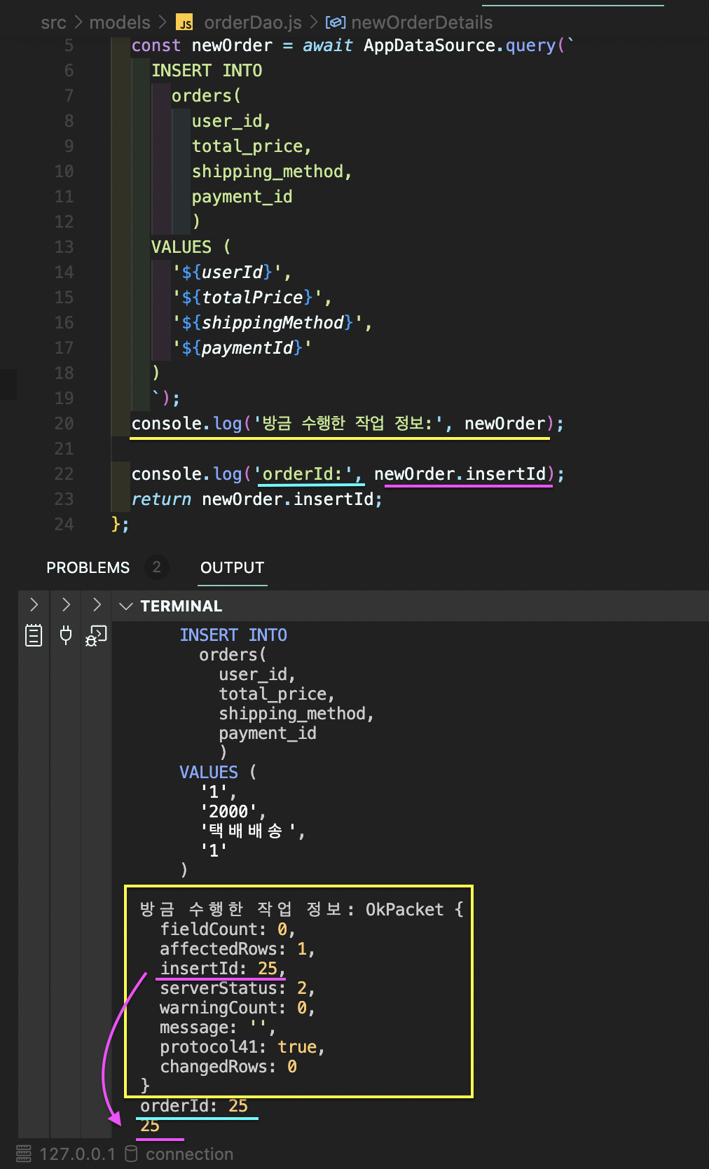 3. neworder.insert id 연결 안됐고 (return)
