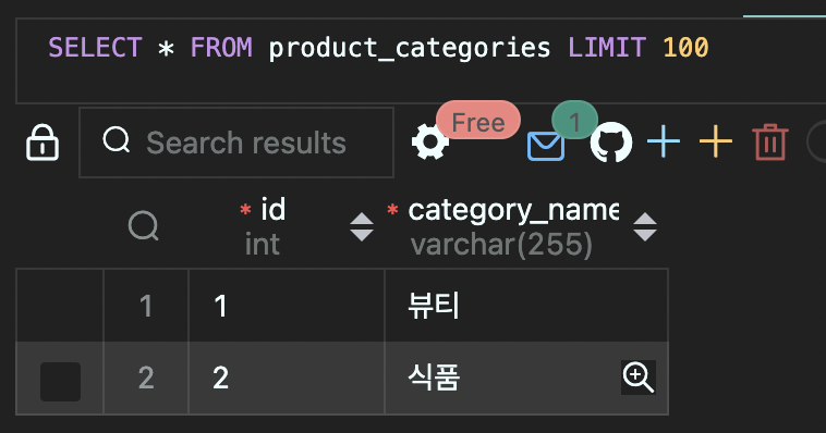 vscode의 mysql 확장자 사용 -> 주문 결제 시 간편 1. carts 수량 넉넉히 넣어두고 (테스트 해야 하니까) ( + 버튼 누르면 됨) 2. user 만들고 (created at dms 자동생성되니 냅두고) 3. product 만들고 (아래에 produ