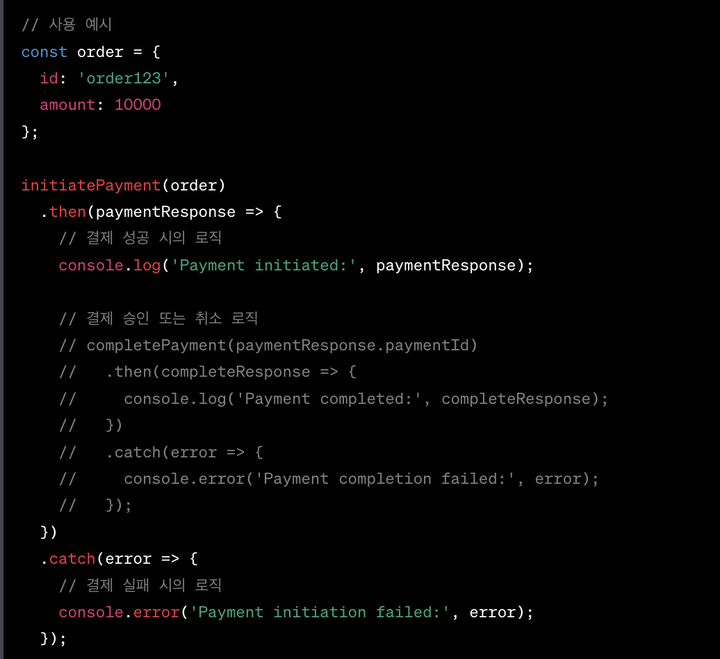 // 결제 성공 시의 로직