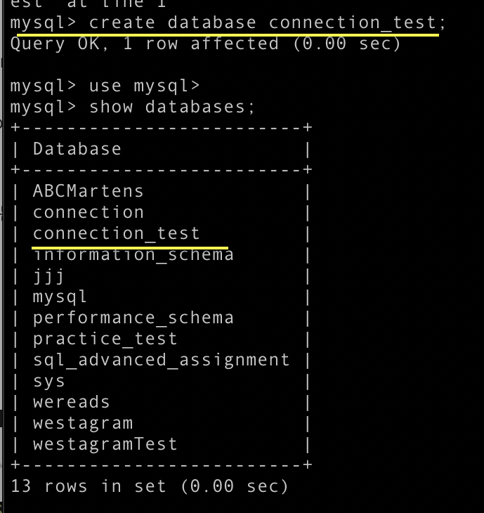 2) 데이터베이스 이름 넣기 -> 무조건 connection test database