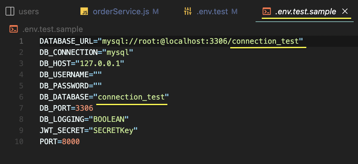 따라서 테스트용 dotenv에는 테스트 환경에 맞는 값을 추가해줘야 합니다