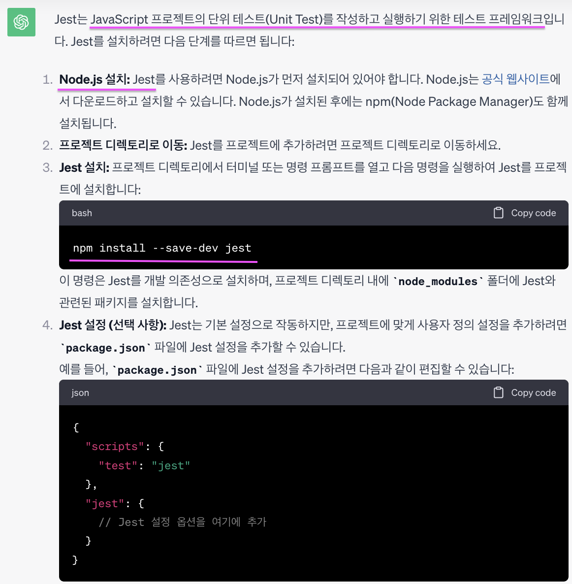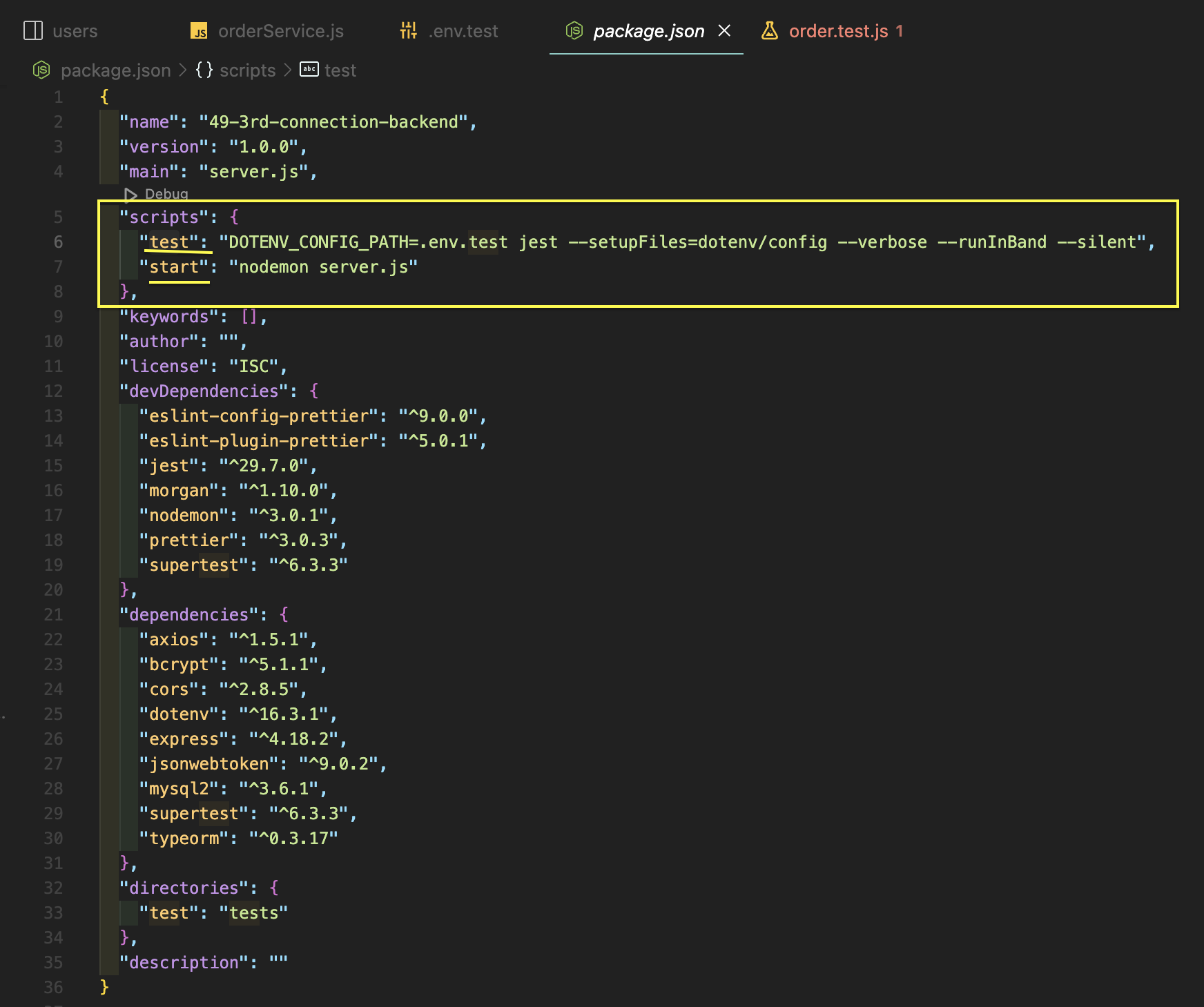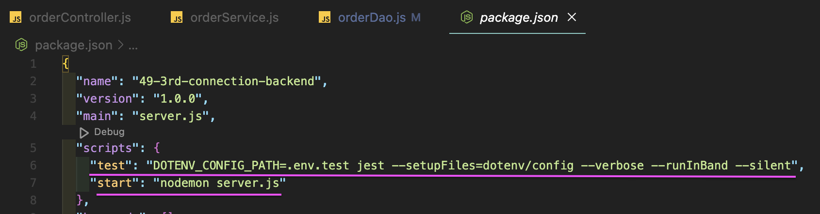 3. package.json scripts에 명령어를 추가 (jest를 활용하여 테스트를 진행할 때 해당 파일을 config로 테스트할 수 있도록)