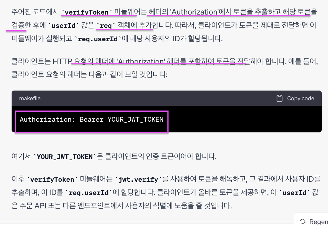 header의 authorization에서 토큰을 뽑아서, 그 안의 id (userId)를 가져오는 것