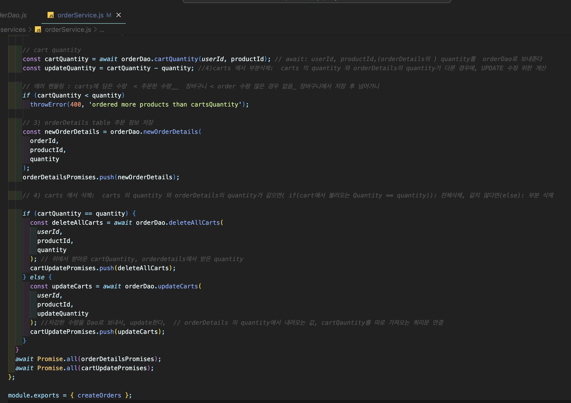 orderDao도 데이터베이스에서 productId 그대로 가져오기에 변함이 없다.