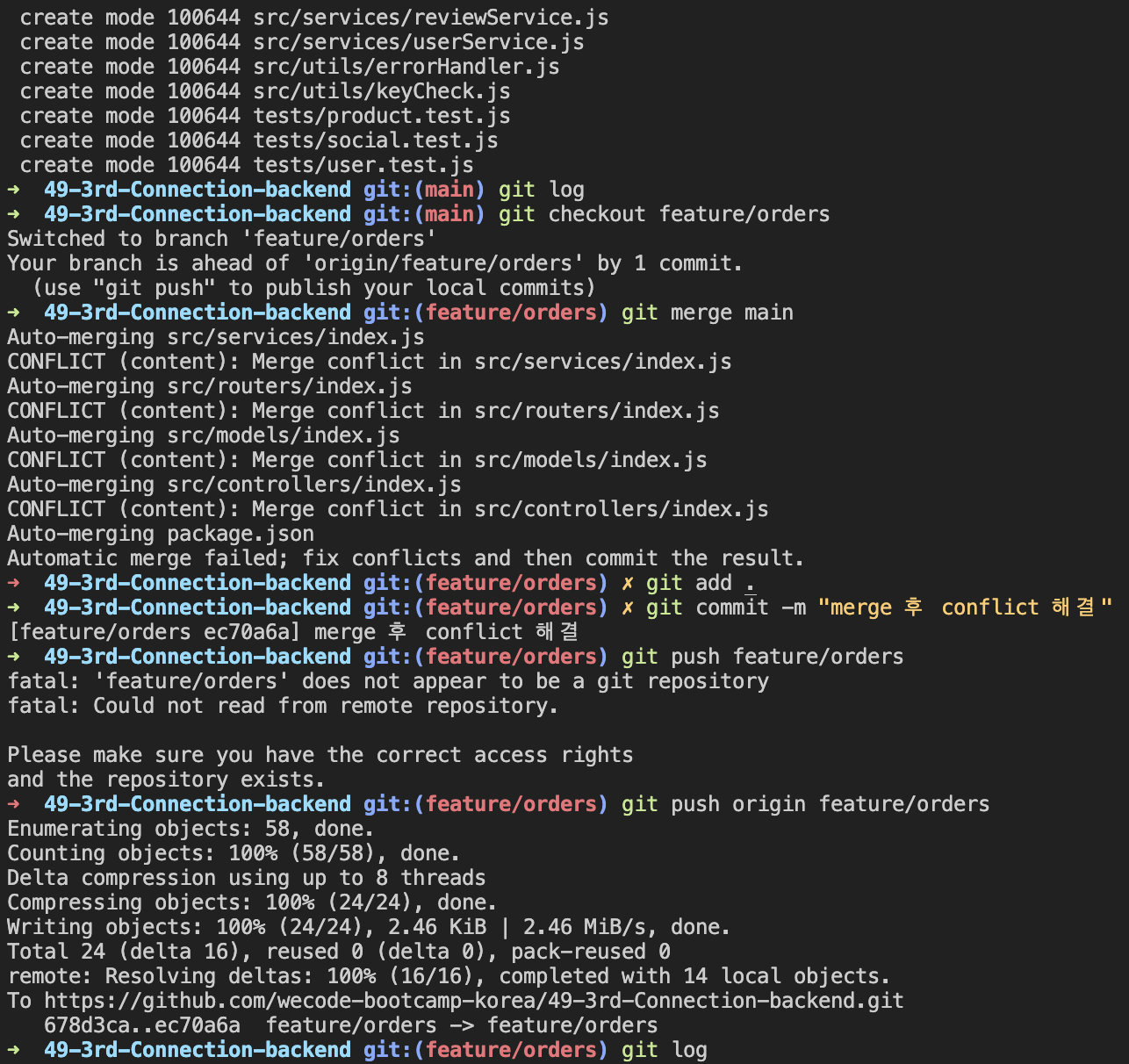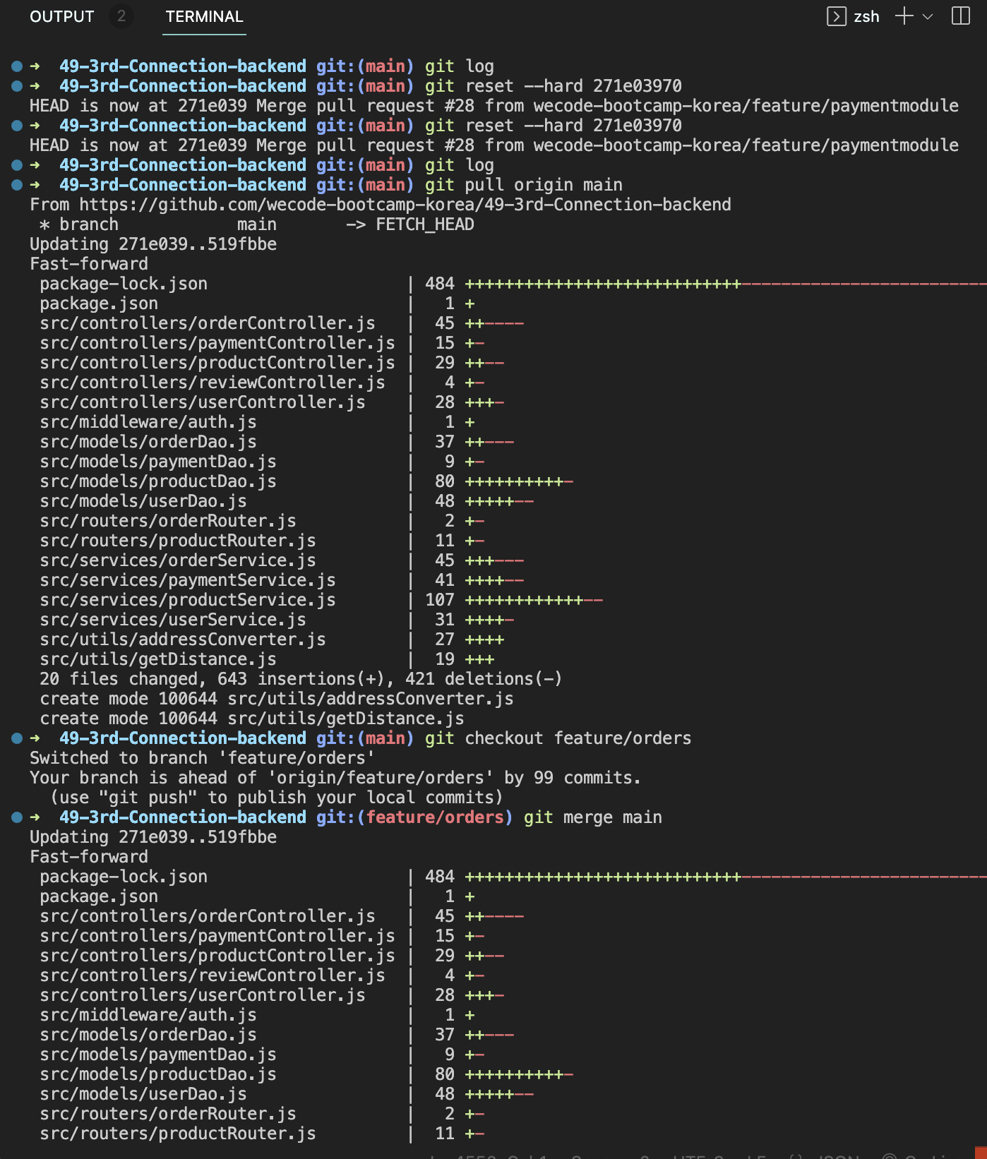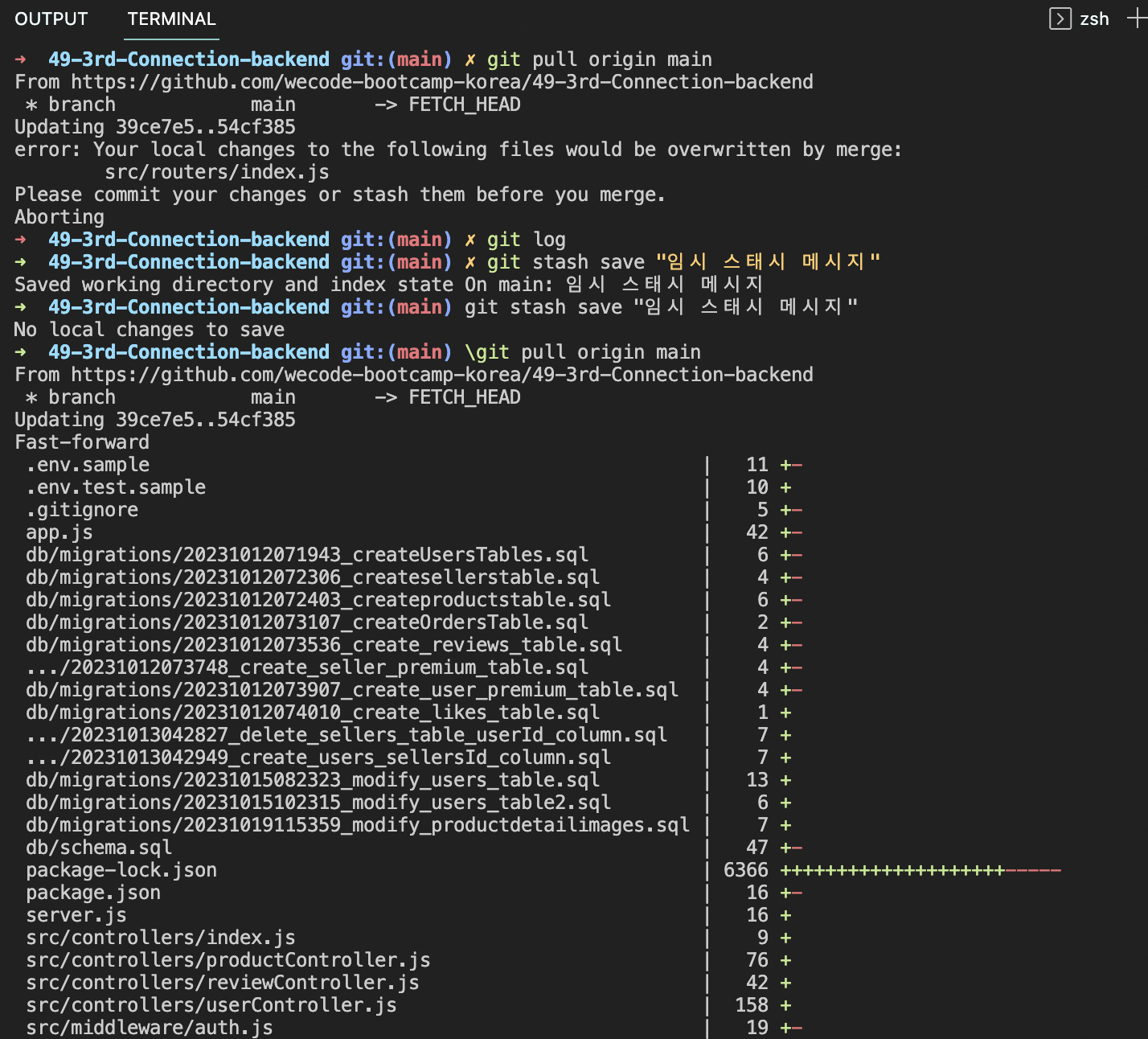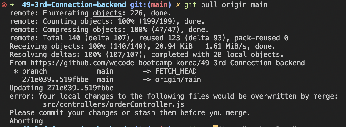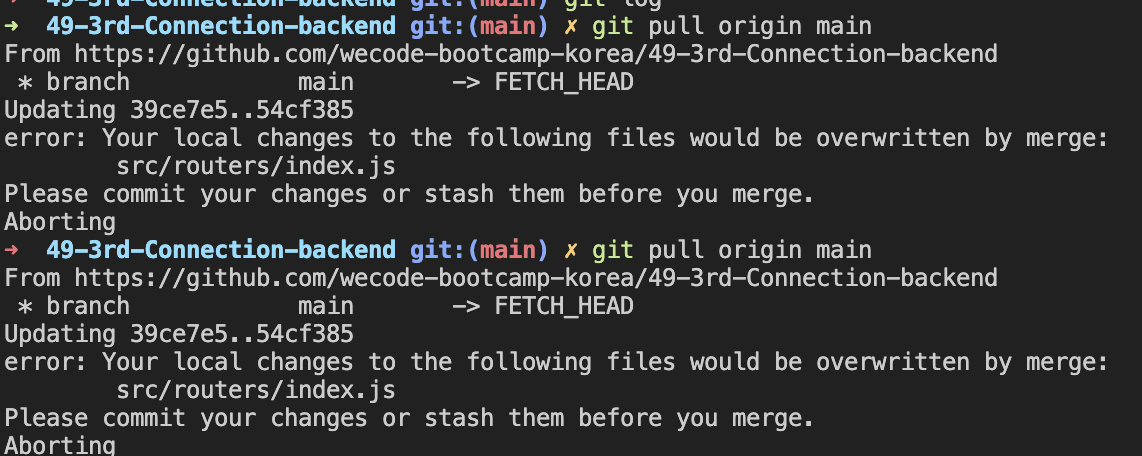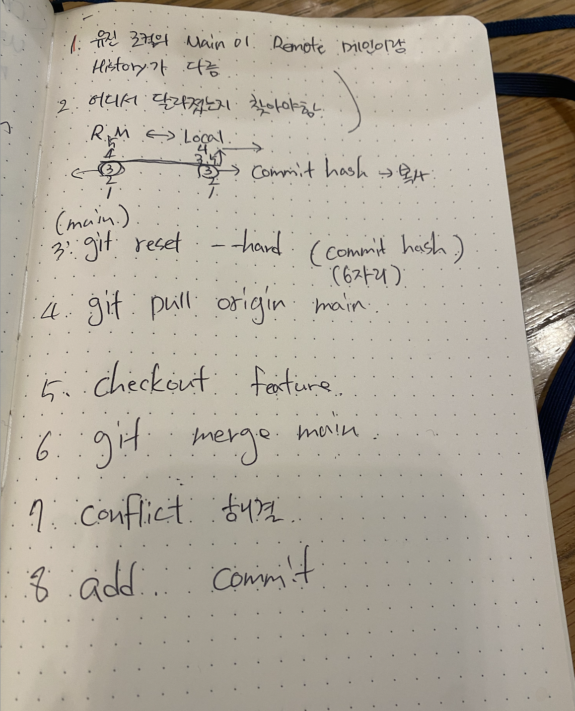같은 거 있는 거 까지 봐서, 그 상태 전으로 돌려놓고, 다시 지금 remote main을 pull 받아서