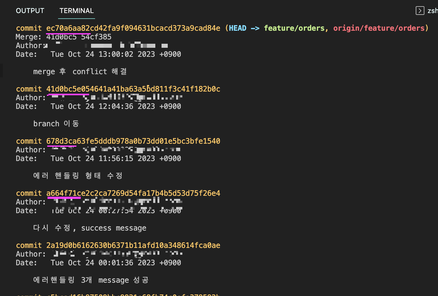 3. git reset -- hard (git log에 있는 노란색 숫자 6자리 이상 복사 붙여넣기)