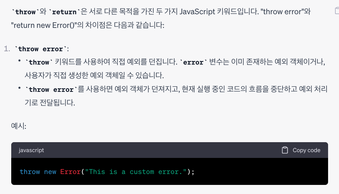 - return new Error: 예외가 던져지지 않고, 단순히 예외 객체를 반환