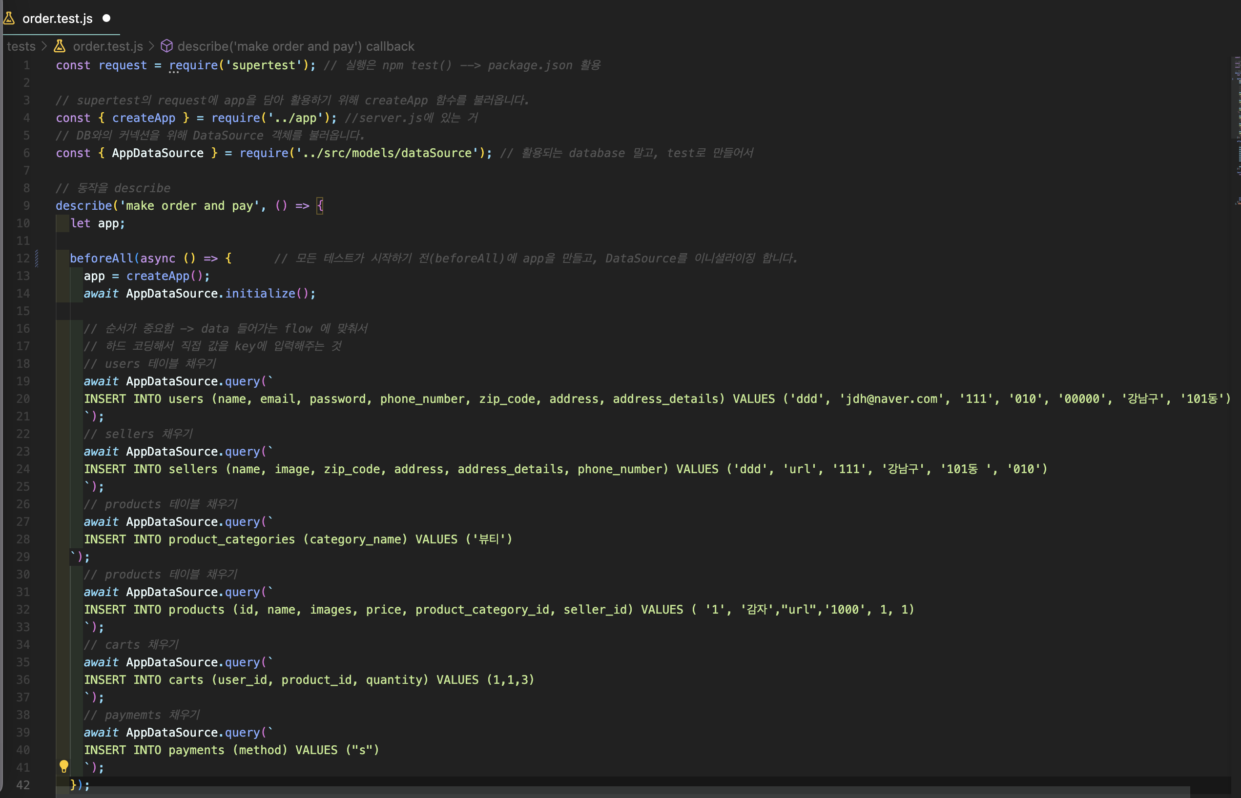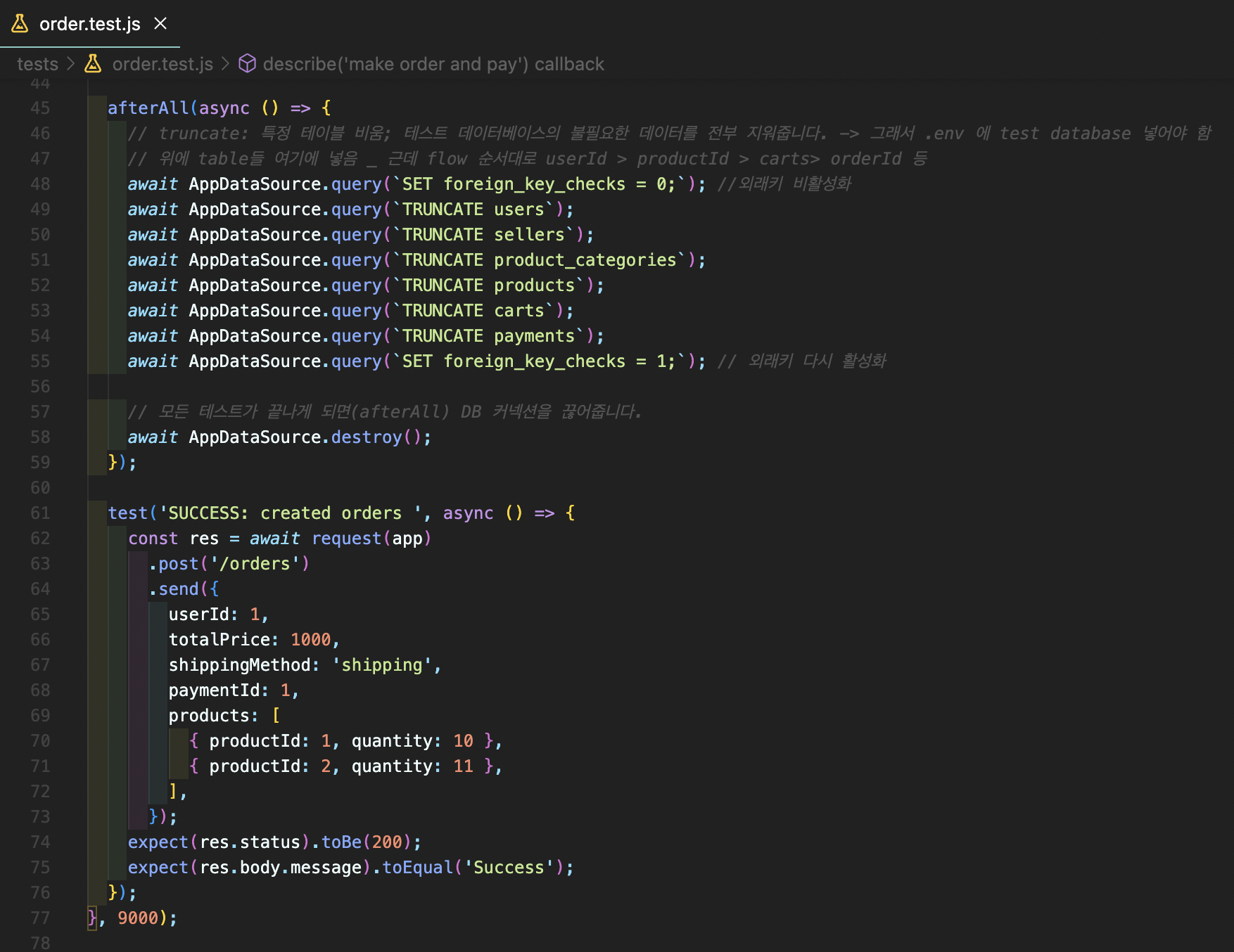 Project 3 -[주문 api] test code 성공