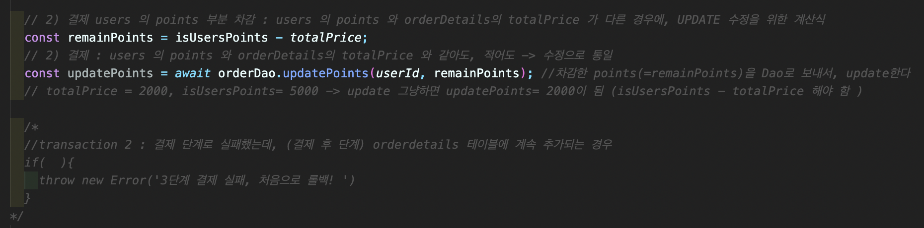 if ( ) { throw new Error(orderDetails 주문정보 저장 실패, 처음으로 롤백')