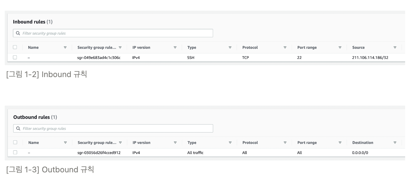 - '인바운드 규칙으로 허용된 IP 혹은 Port' 아니면, 접속불가