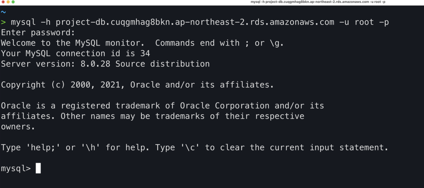 mysql -h 'DB Instance Endpoint 주소' -u 'user' -p