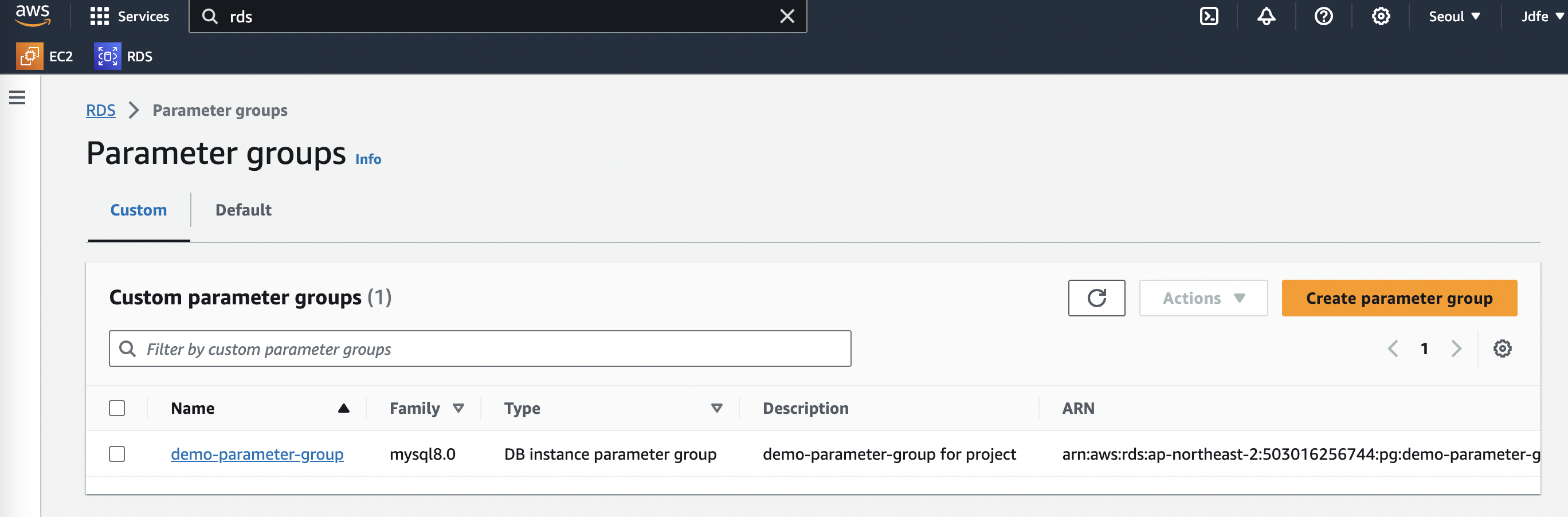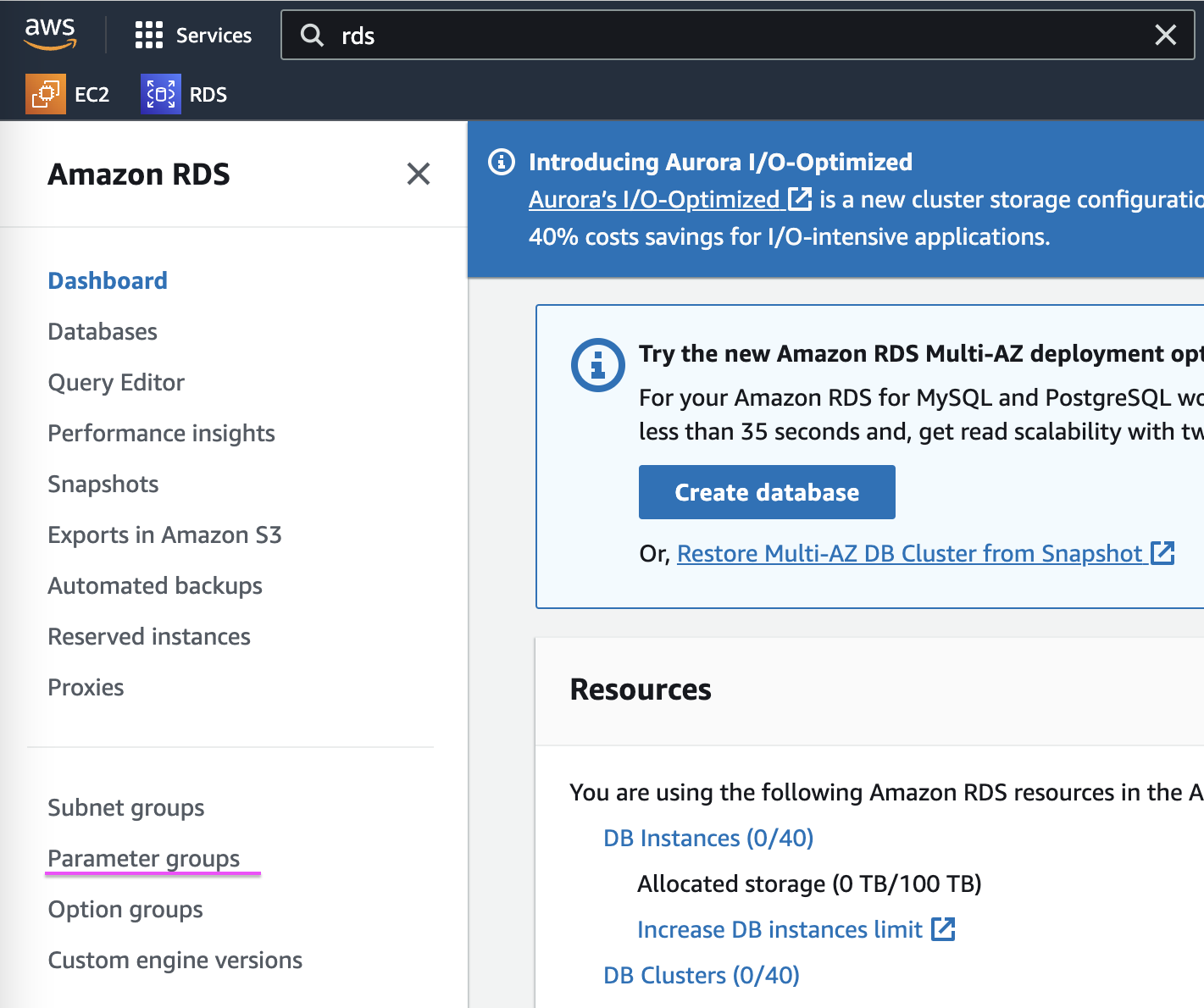 1-2. 파라미터 그룹(Parameter Group) 생성
