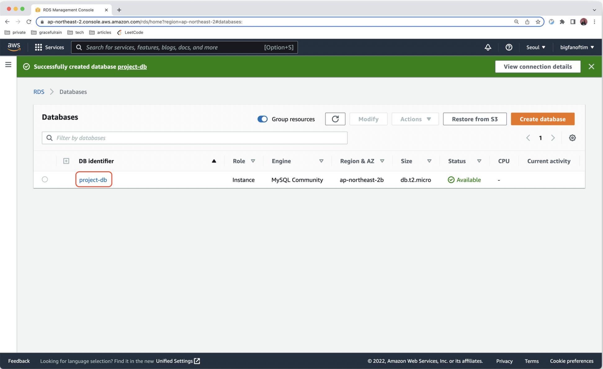 2-2. 생성된 DB 인스턴스에 접속하기
