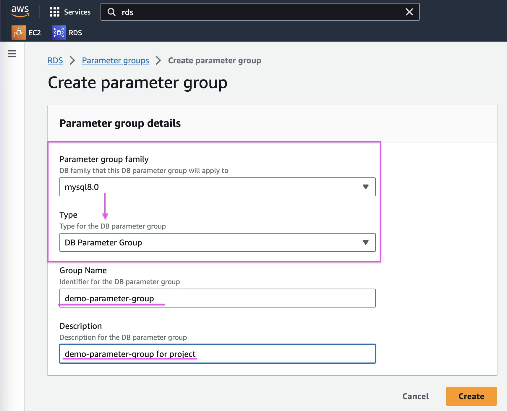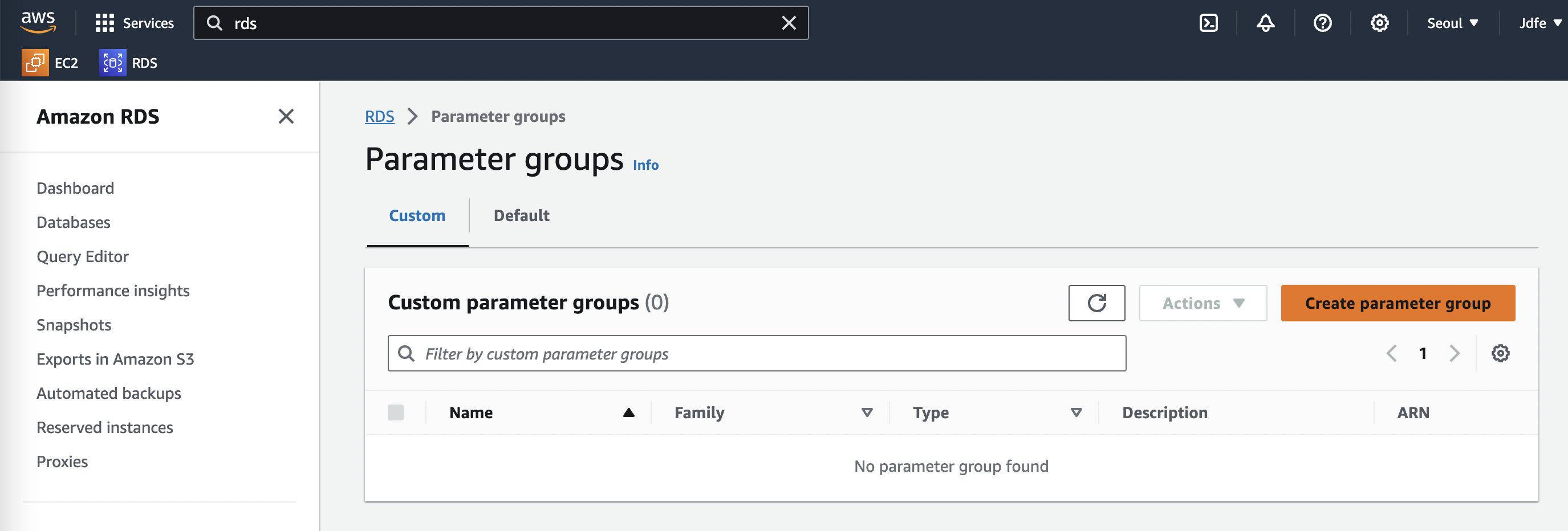 1-2. 파라미터 그룹(Parameter Group) 생성