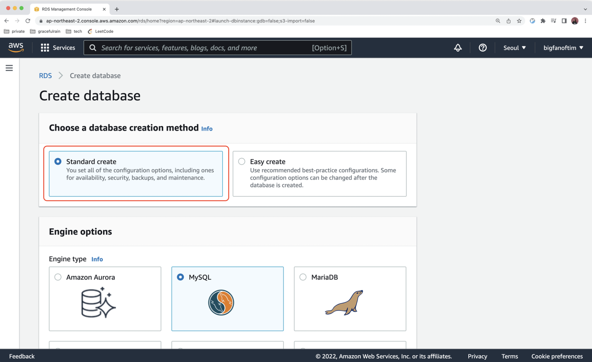 RDS를 이용하여 DB 인스턴스(mysql 서버)를 만들 때