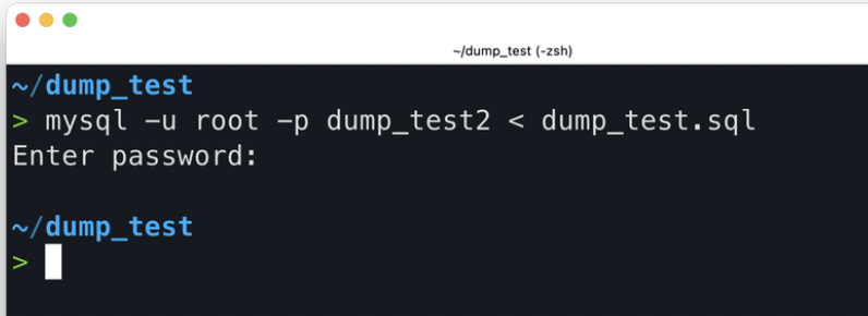 mysql -u root -p 'db_name' < 'dump_filename'.sql