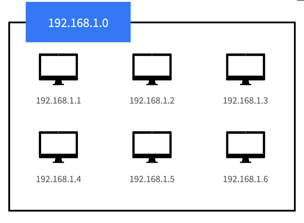 192.168.1.0 은 호스트 ID가 0, 즉 해당 네트워크의 첫번째 주소이기 때문에 해당 네트워크를 대표하는 주소입니다. 따라서 192.168.1.1 ~ 192.168.1.6 의 IP 주소를 가진 컴퓨터는 해당 네트워크 주소인 192.168.1.0 의 네트워크 안에 있다고 볼 수 있습니다.