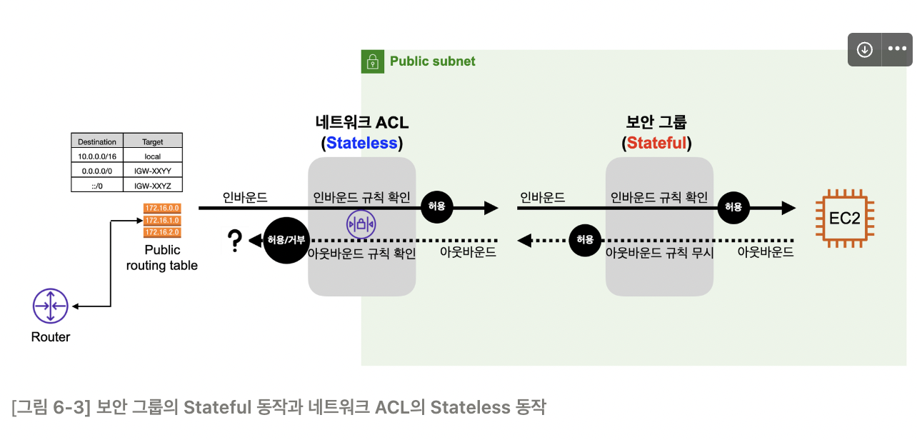 [그림 6-3] 보안 그룹의 Stateful 동작과 네트워크 ACL의 Stateless 동작