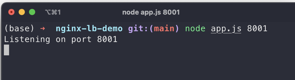 3. 그렇다면 3개의 서버 중 어떤 서버가 요청을 처리했는지 서버 로그를 확인해보겠습니다. [그림 3-4]와 같이 첫번째 요청은 8001 port에 할당 된 서버에서 처리한 것을 확인할 수 있습니다.