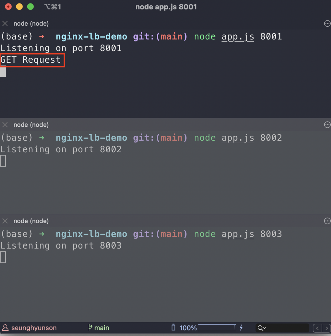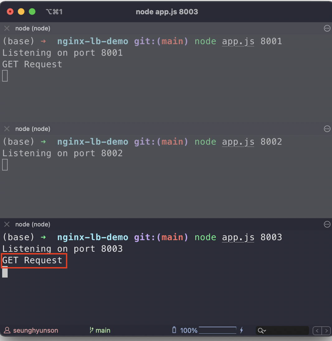 서버들도 준비되었고 Nginx 세팅도 완료했으니 이제 실제로 요청을 보내 Load Balancing이 제대로 적용되는지 확인해 보겠습니다.