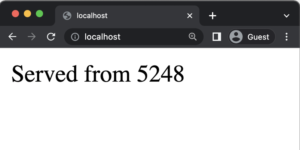 - 처음 요청을 보내니 [그림 3-3]와 같이 5248이라는 프로세스 ID가 반환되었습니다. (Node.js server가 실행 되고 있는 프로세스는 컴퓨터마다 다르기 때문에 5248이 아닐 수 있습니다.)[그림 3-3] Request를 처리한 node applicatrion server의 process ID