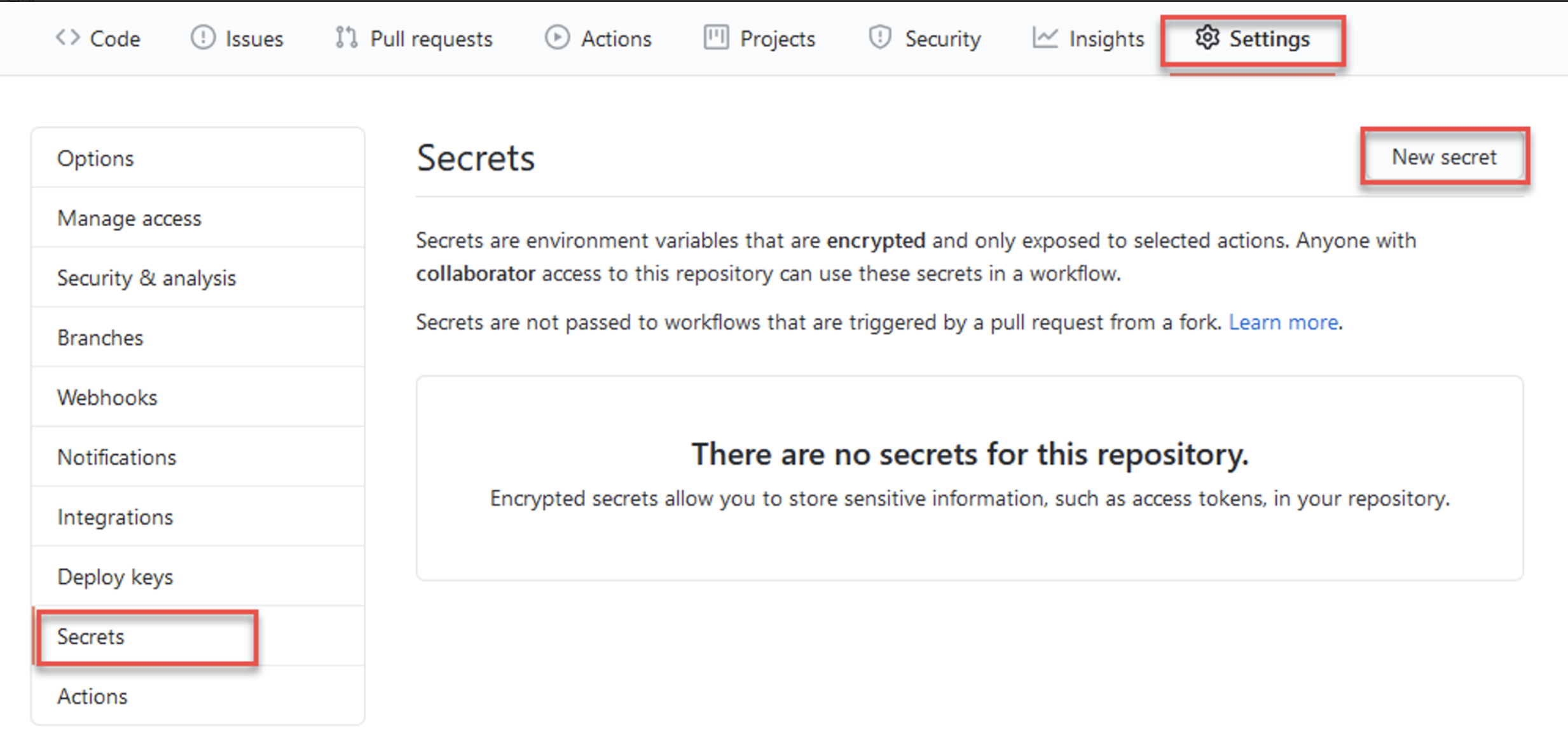 그림 [4-3] Github Action상 Dockerhub 개인정보 설정버튼 위치그림