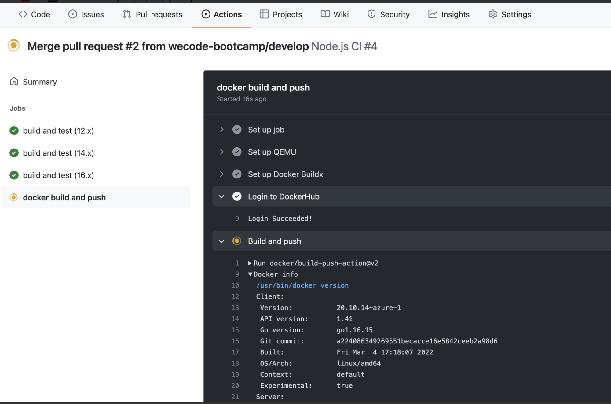 - Unit Test가 전부 통과하면 docker image를 빌드한다.