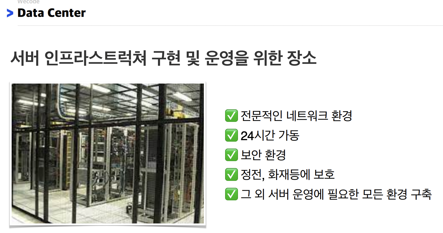 그래서 서버 운영 관련해서 구비 된 것이 data center