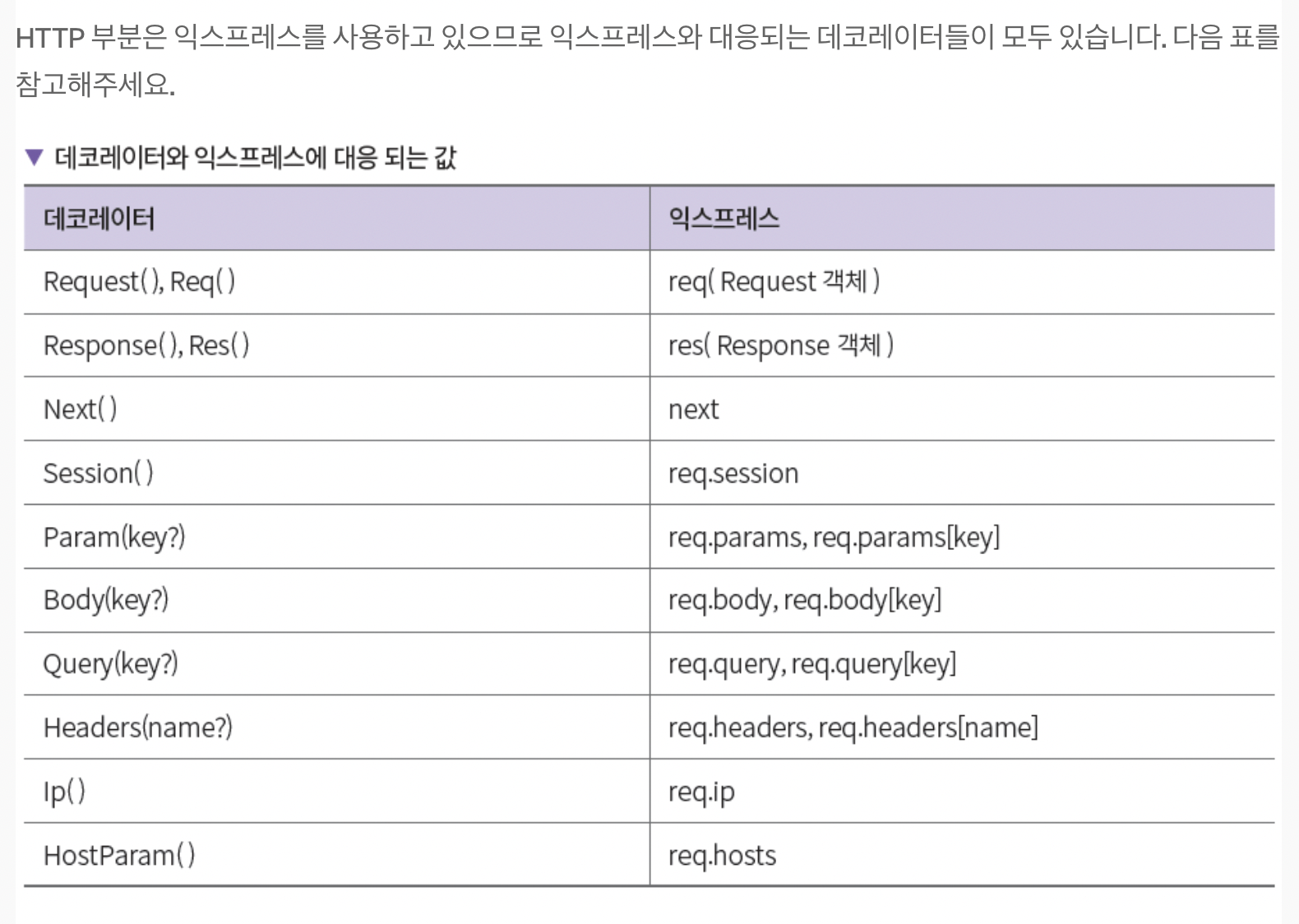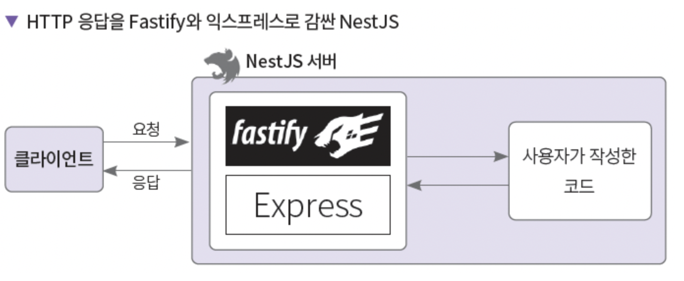 NestJS는 익스프레스를 품고 있기 때문에 익스프레스 기반의 미들웨어를 거의 대부분 사용할 수 있습니다. 정확하게는 HTTP 요청과 응답에 익스프레스의 Request와 Response 객체를 기본으로 사용합니다. 성능이 중요하다면 패스티파이로 바꿔 쓸 수도 있습니다. 이는 아키텍처 구조를 유연하게 잘 만들었기 때문입니다.