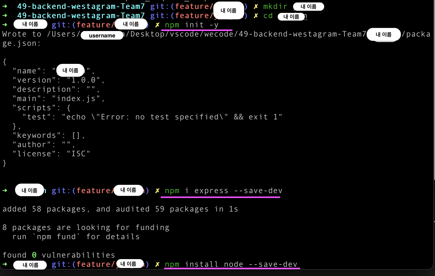 3. npm i express -- save-dev (각 폴더별 express 다운)