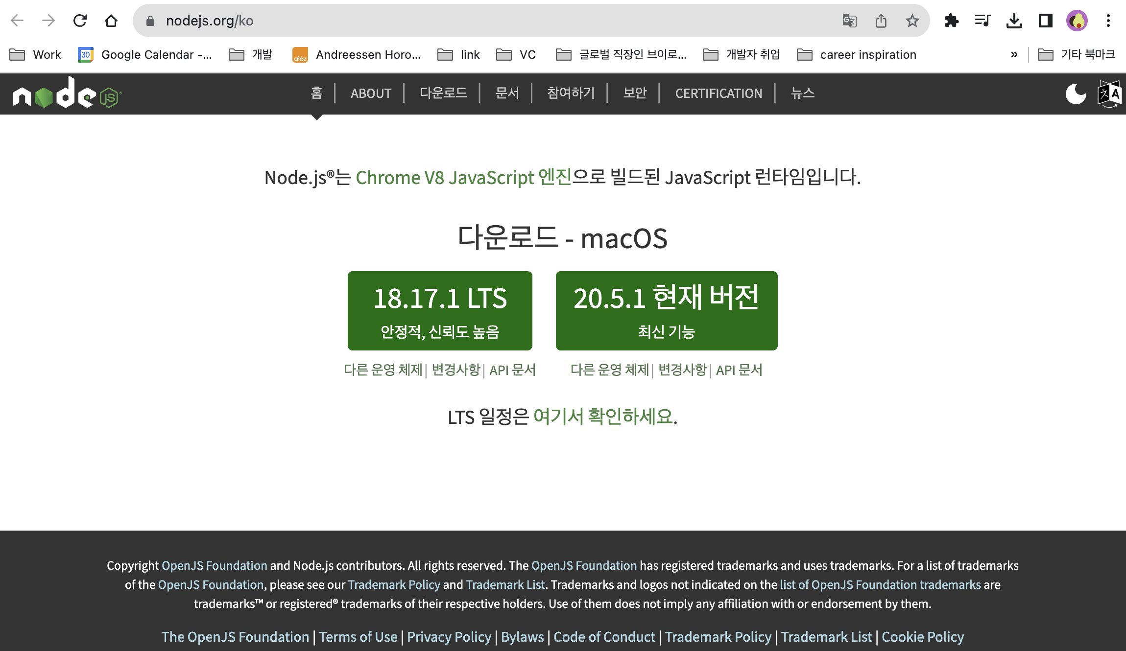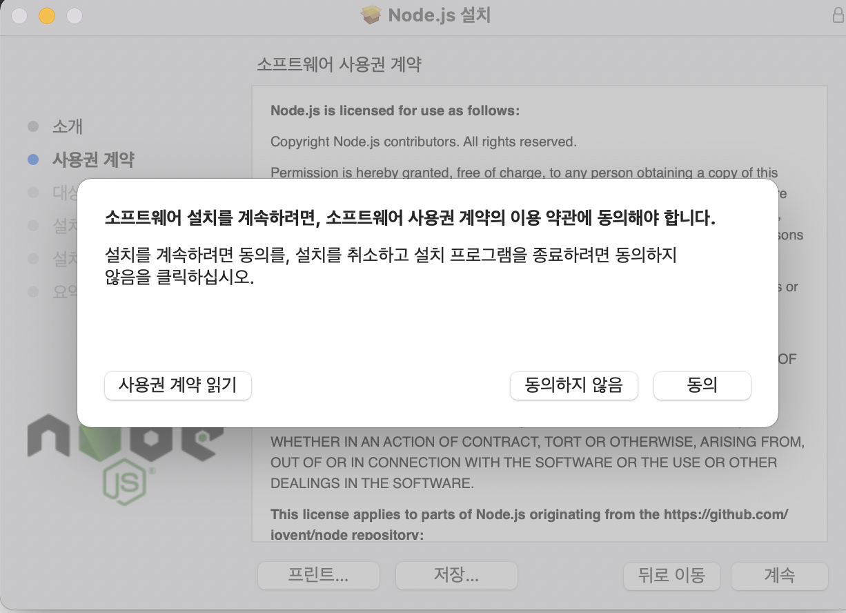 "Welcome to Node.js (version)" 이 나오면 정상적으로 설치된 것이다.