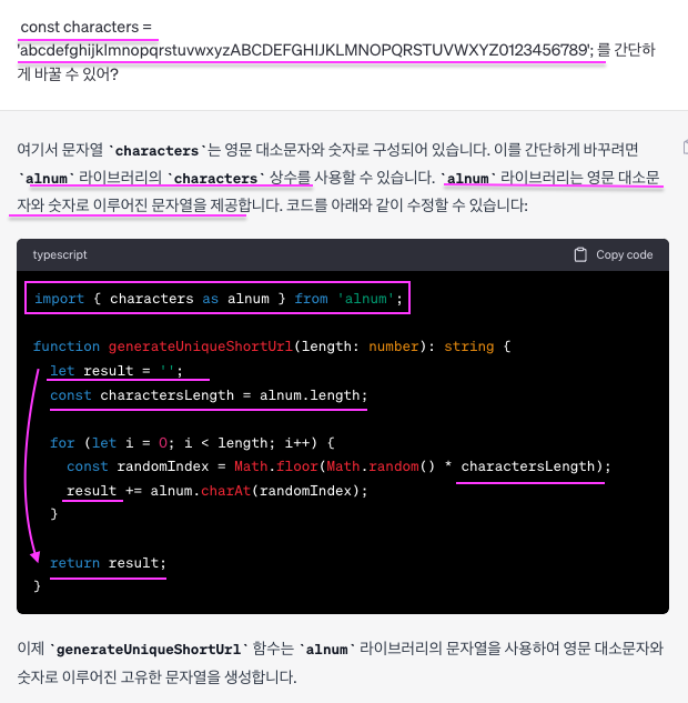 여기에서 generateUniqueShortUrl은 어디에서 만드니? 절대 중복되지 않는 영문 대소문자와 가끔 포함되는 숫자 하나로