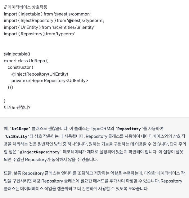 --> 중복되지 않는 영문 대소문자와 가끔 포함되는 숫자를 생성하는 로직은 일반적으로 서비스(Service)나 독립적인 유틸리티 함수에서 구현. 이러한 로직은 데이터베이스와 직접적으로 관련이 없기 때문에 Repository에 구현하는 것은 부적절