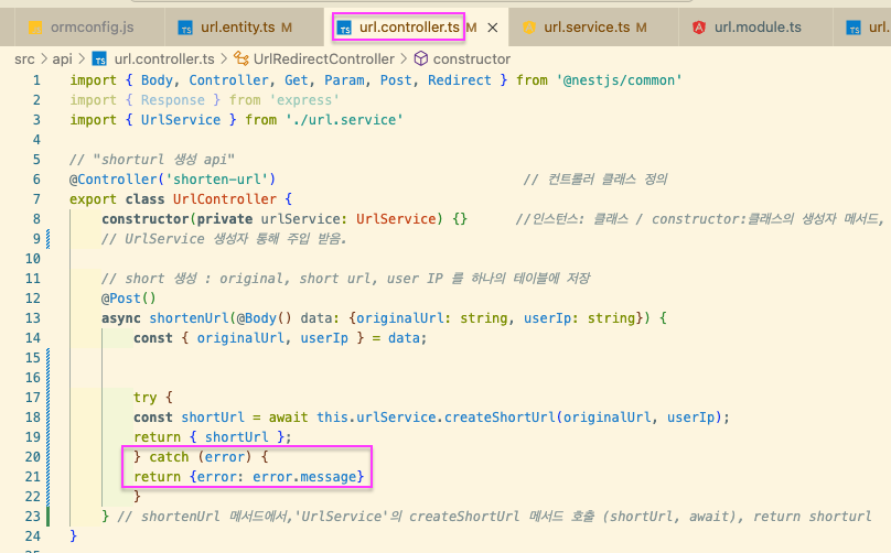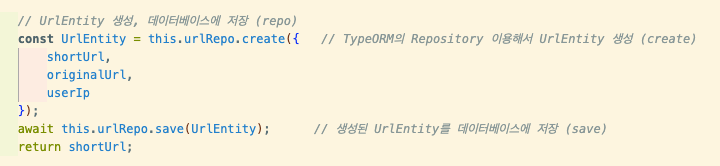 shortUrl을 shrotUrl urlEntity를 UrlEntity ...... 이런 실수들로 에러들이 많이 난다.