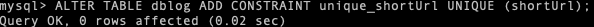 ALTER TABLE dblog ADD CONSTRAINT unique_shortUrl UNIQUE (shortUrl);